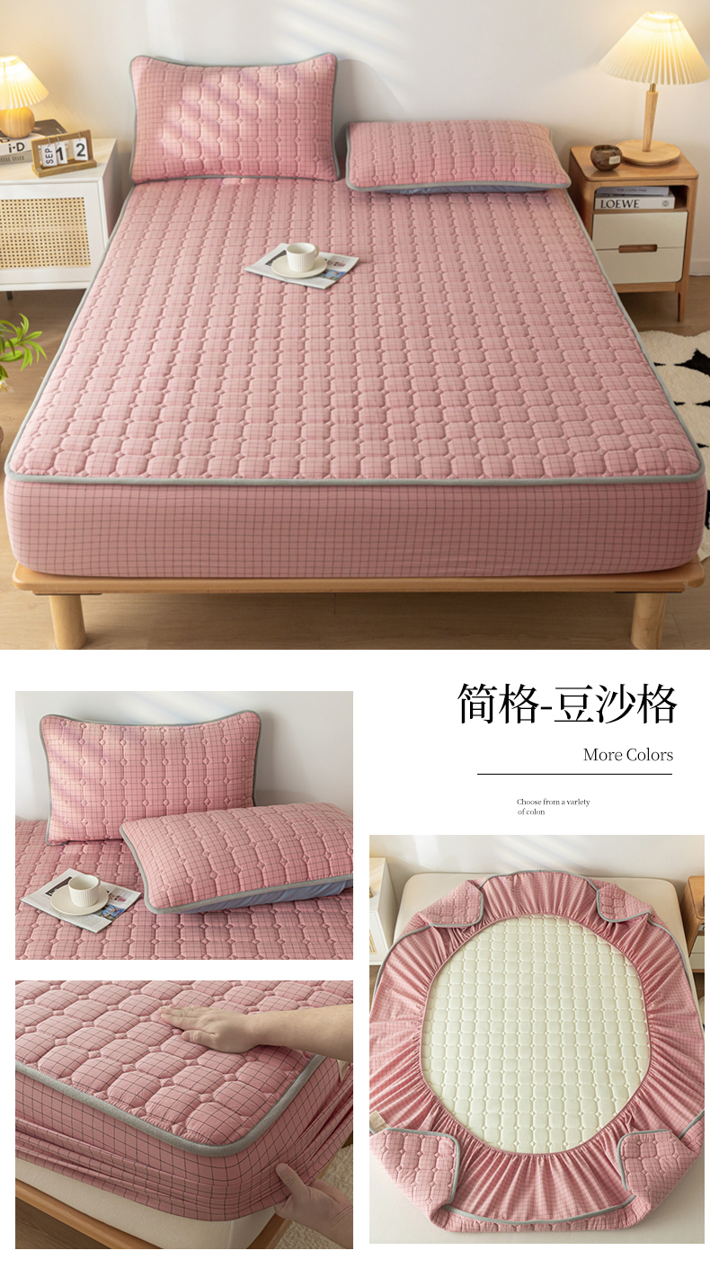 鑫钰 2024新款无印风水洗棉水洗亲肤大豆夹棉床笠-简格 简格-豆沙格