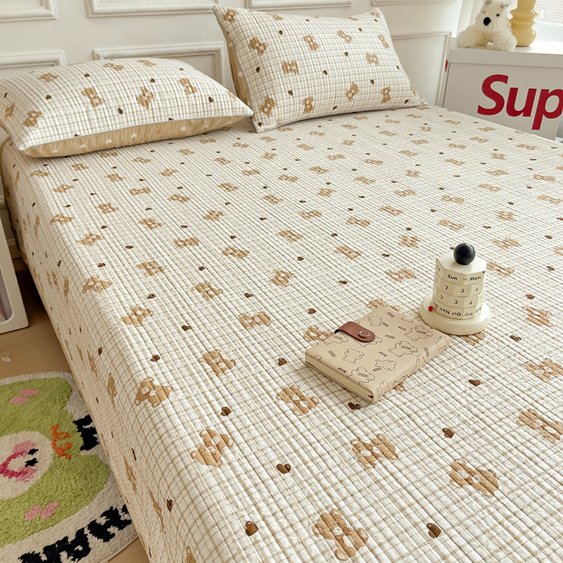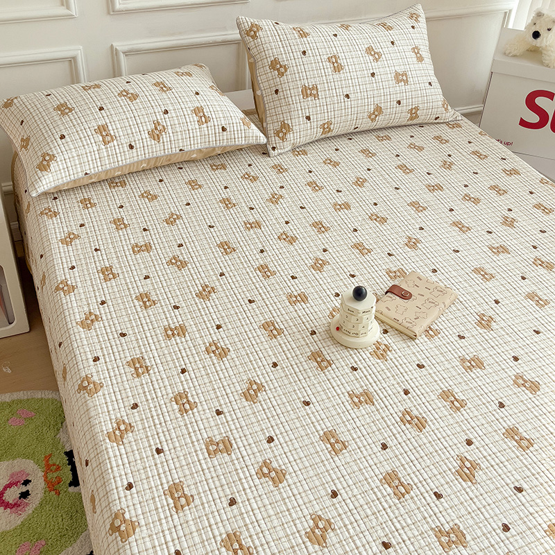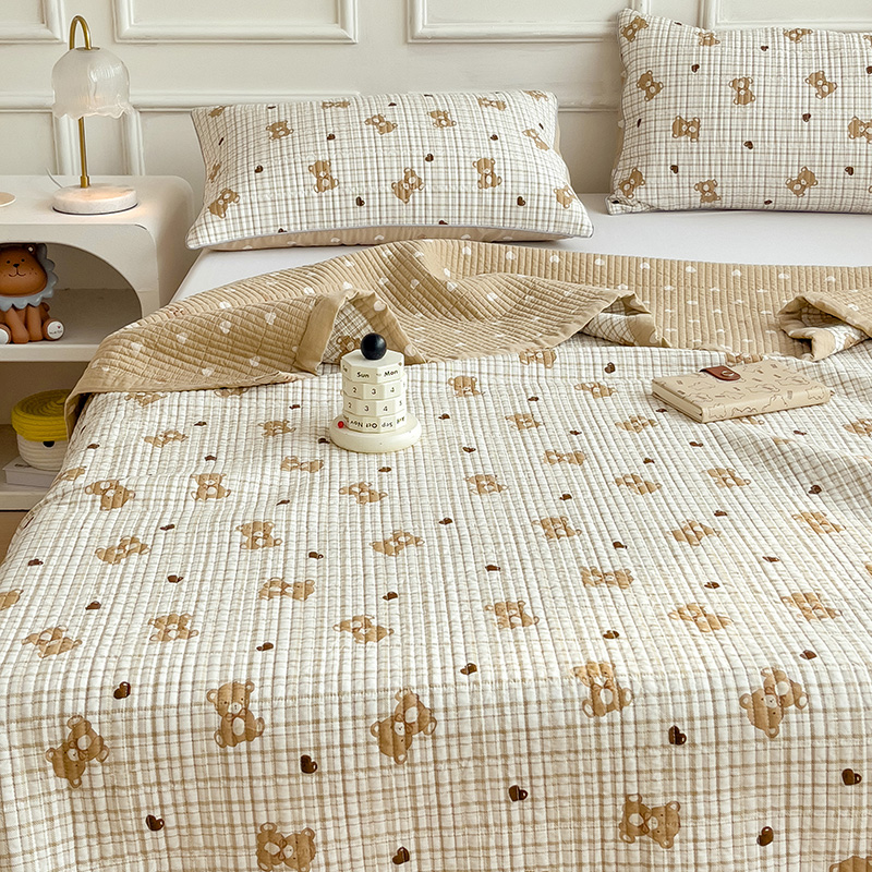 商品名称:沐纯家居 2024新款40S13372双面纯棉床盖三件套 爱心熊宝