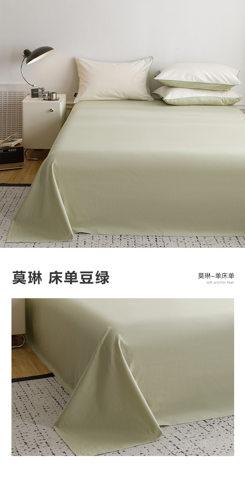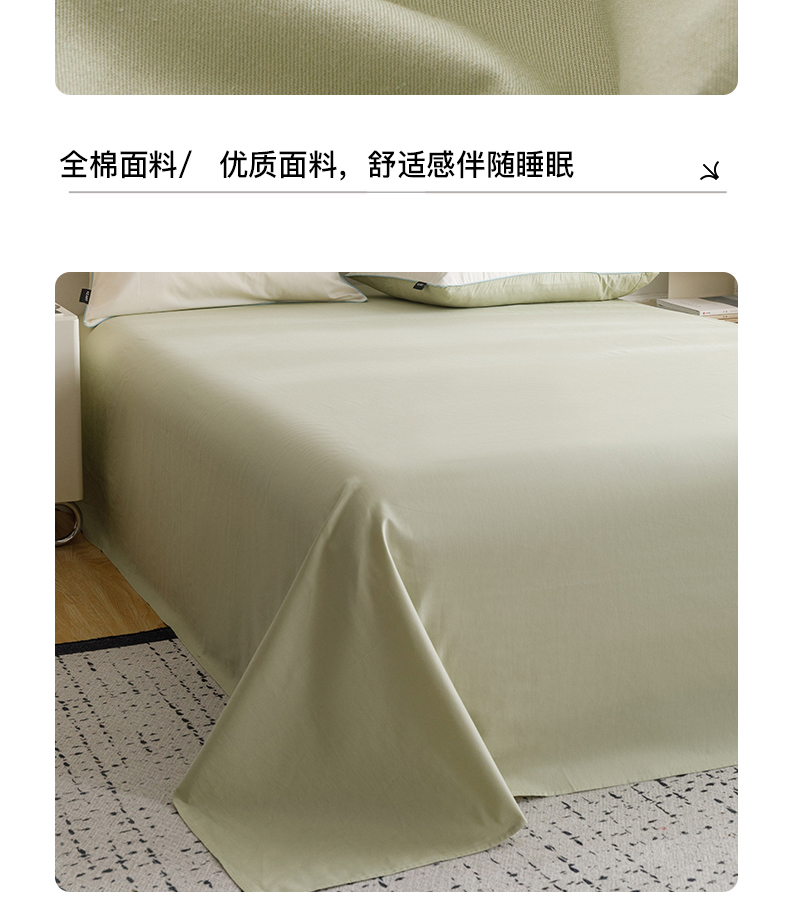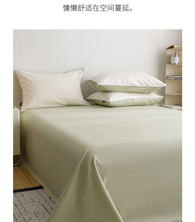 商品名称:卡姿家纺 2024春夏纯色双拼嵌绳款单床单—莫琳 莫琳 床单豆绿