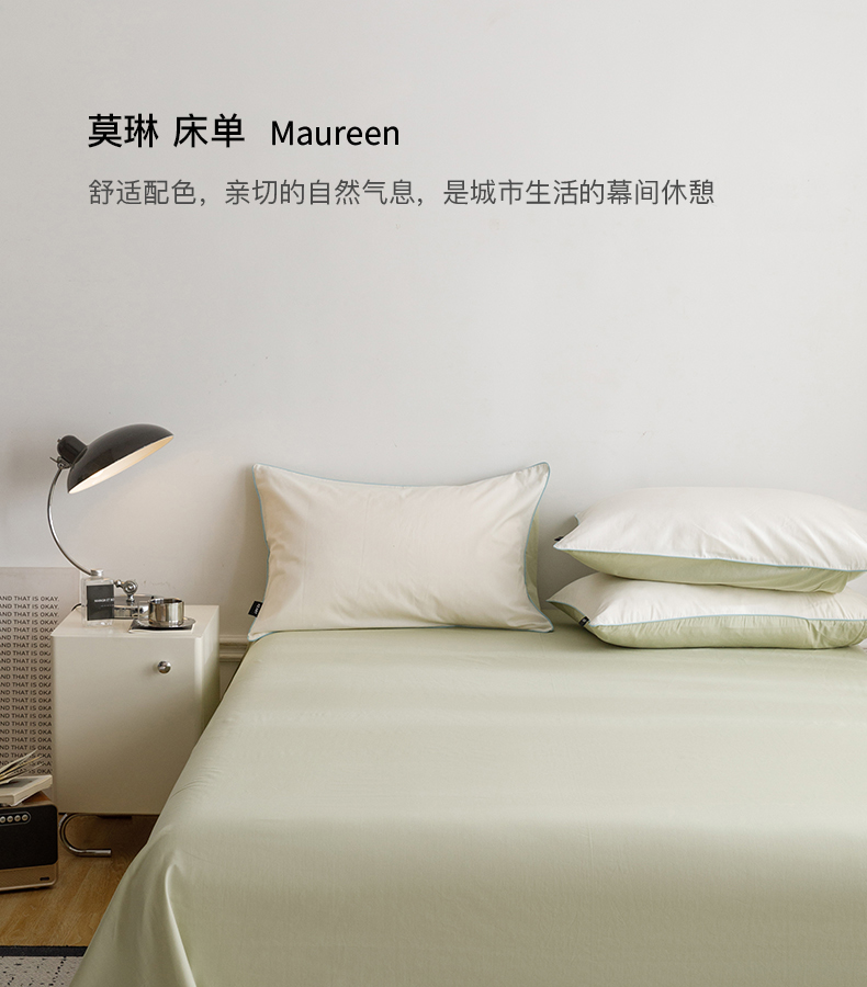 卡姿家纺 2024春夏纯色双拼嵌绳款单床单—莫琳 莫琳 床单豆绿