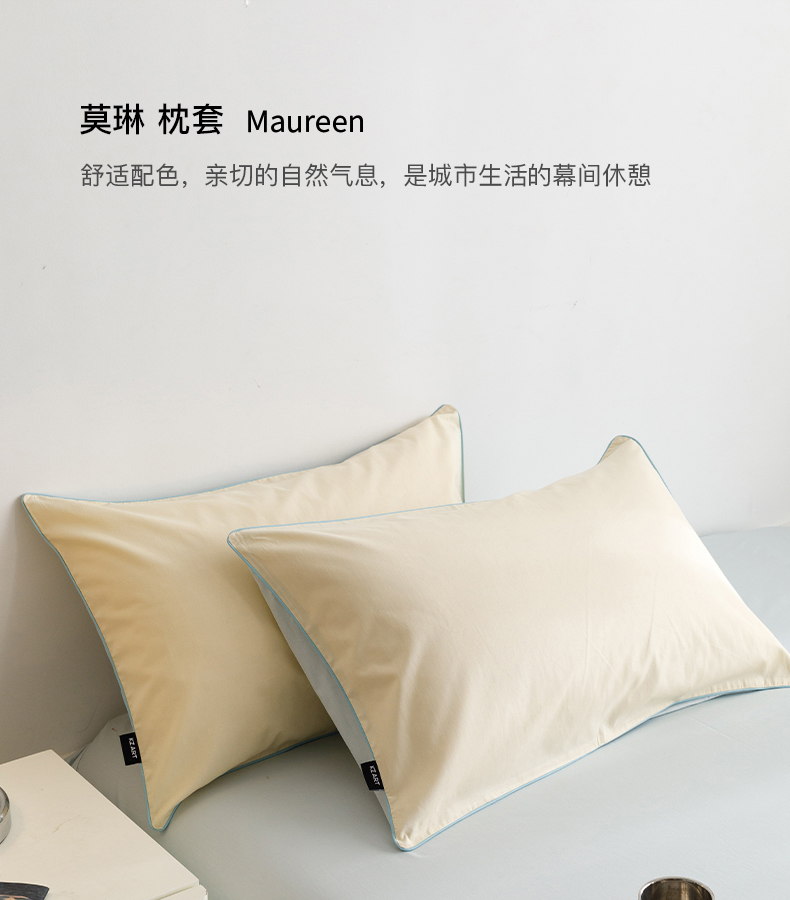 卡姿家纺 2024春夏纯色双拼嵌绳款单枕套—莫琳 莫琳 枕套黄蓝