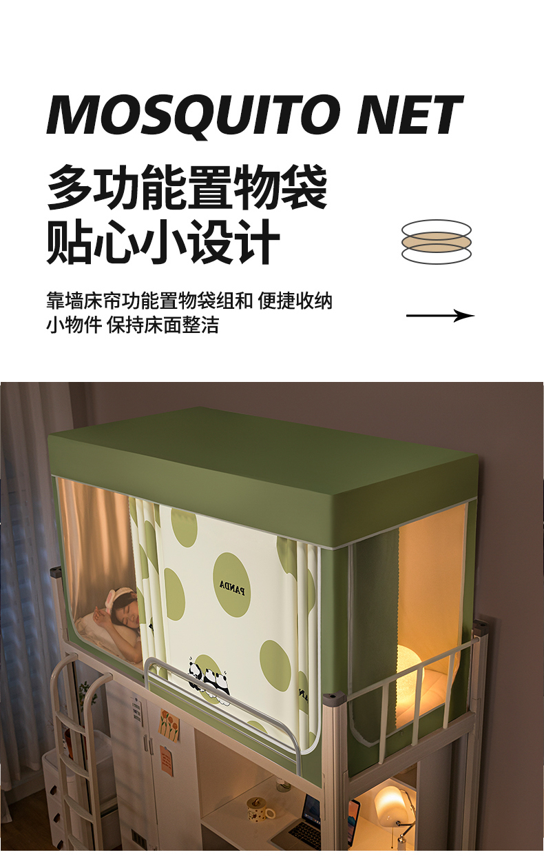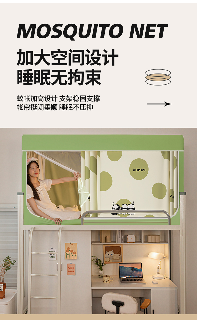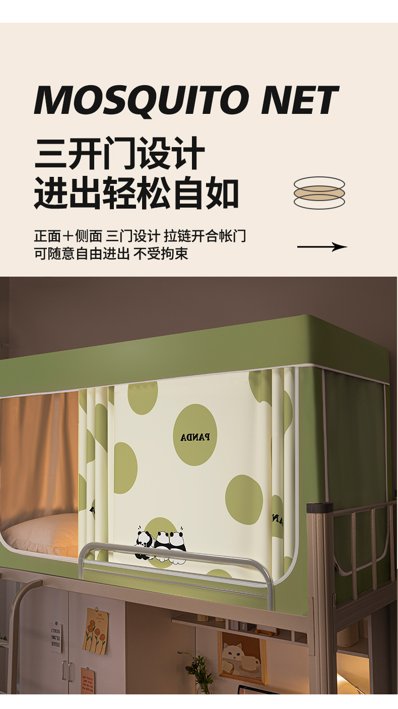 商品名称:青竹苑 2024新款涂银强遮光学生蚊帐上下铺坐床蚊帐 夏日熊猫