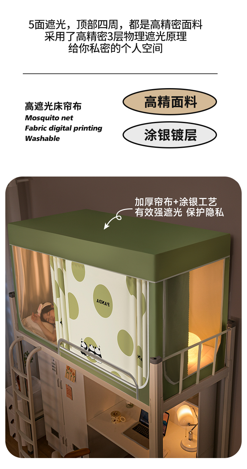青竹苑 2024新款涂银强遮光学生蚊帐上下铺坐床蚊帐 夏日熊猫