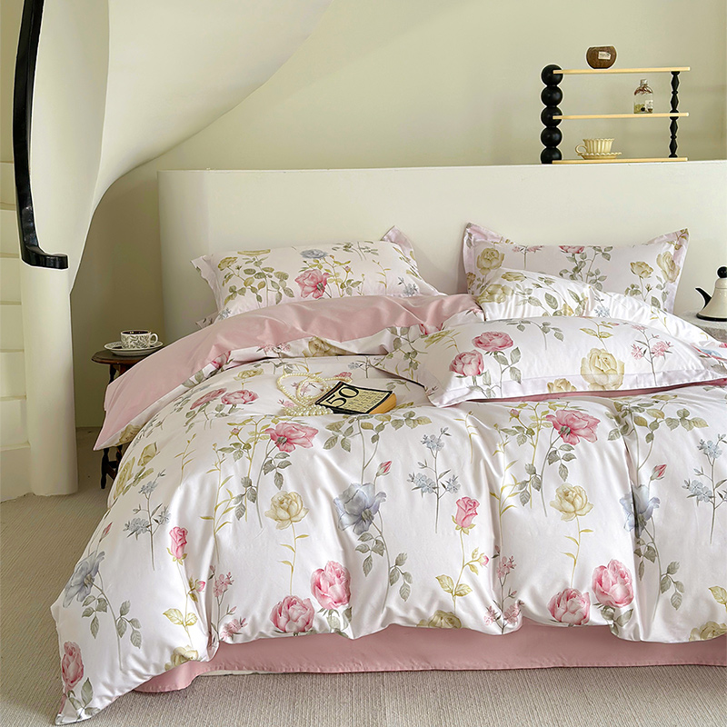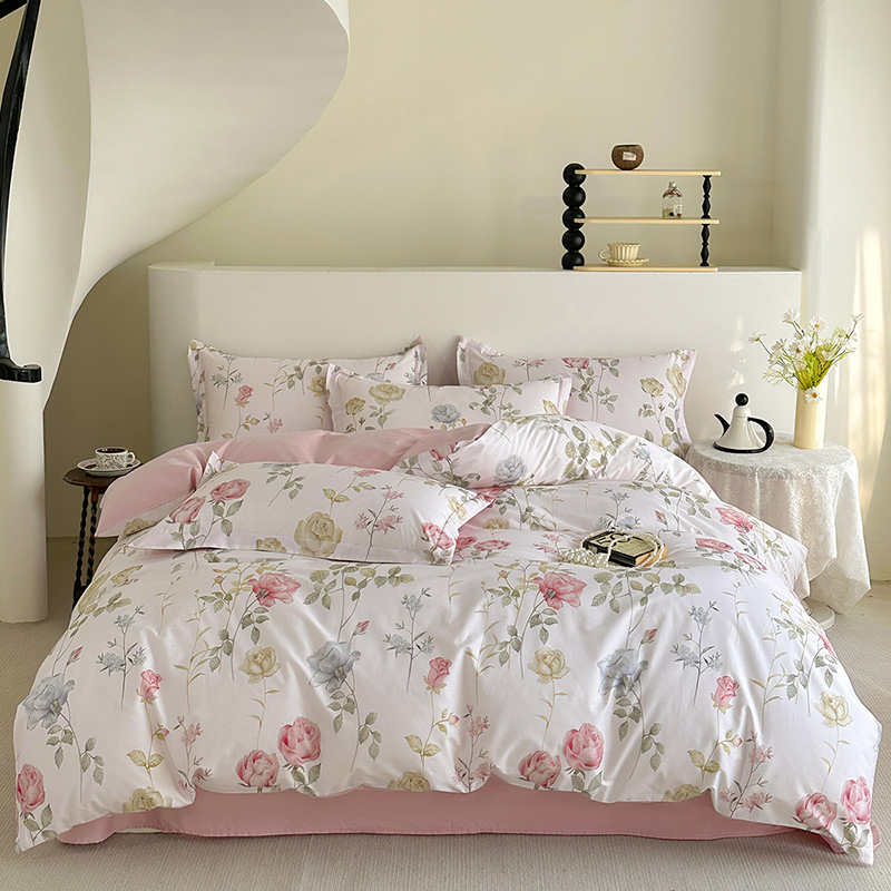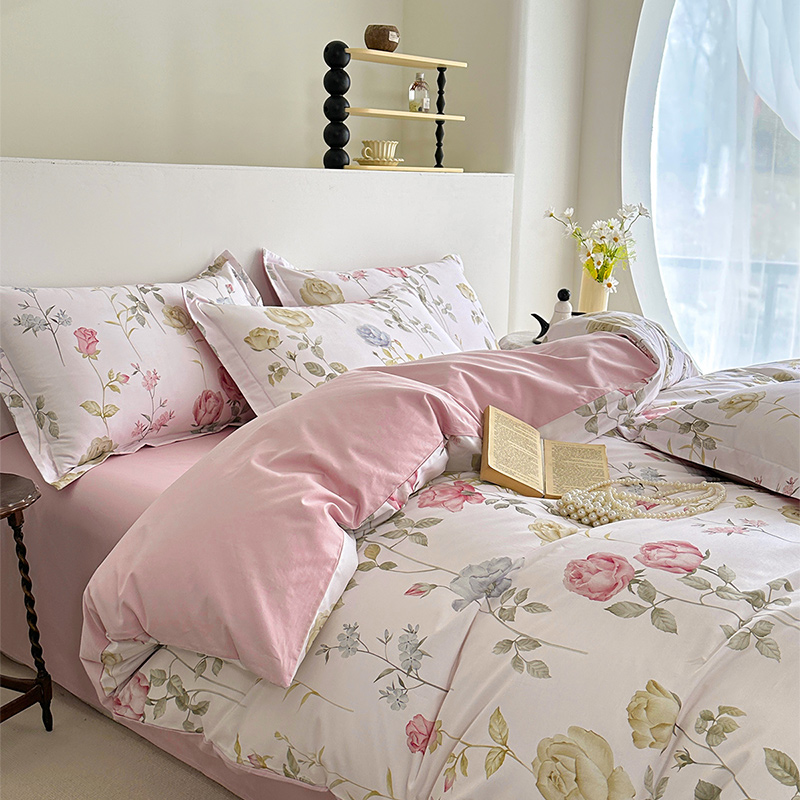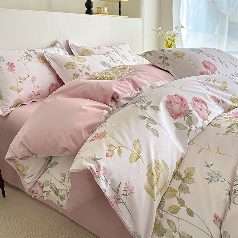 商品名称: 元元被芯 2024新款全棉长绒棉数码印花四件套全棉四件套纯棉四件套 臻爱-粉