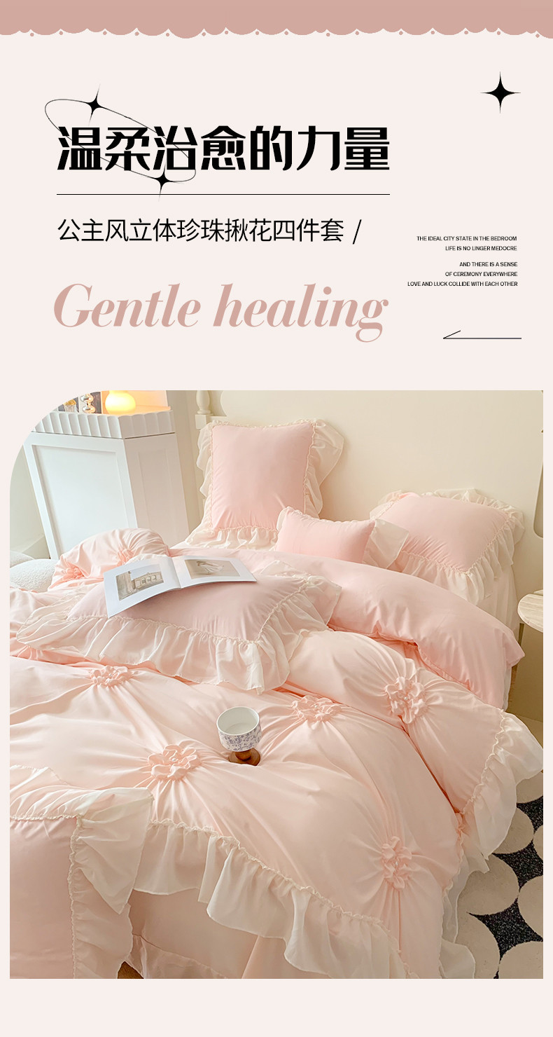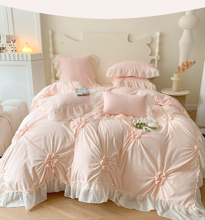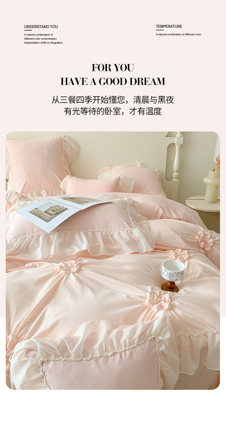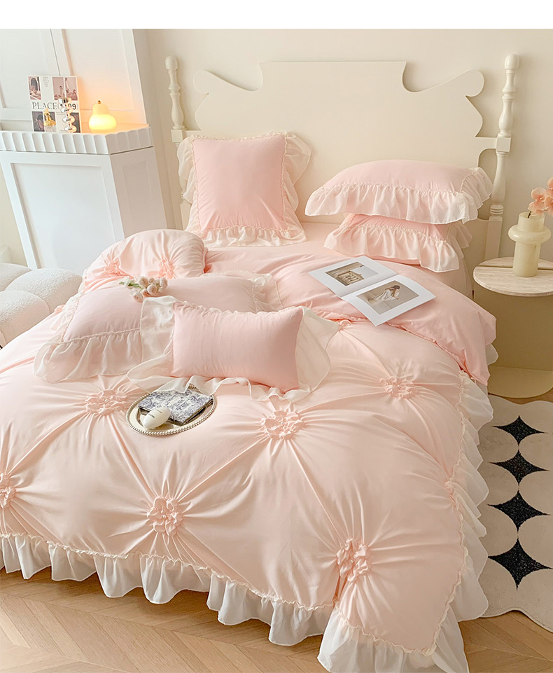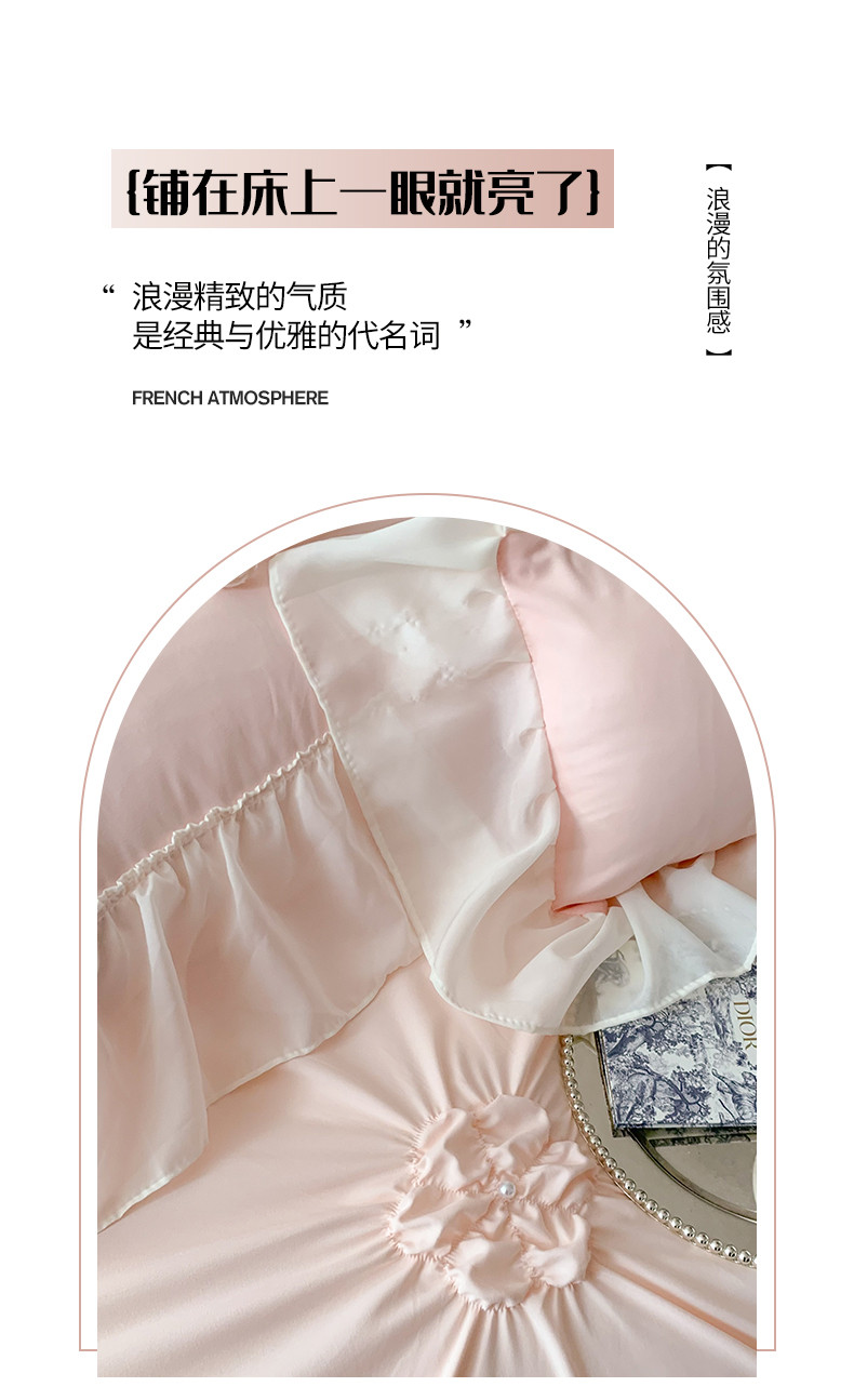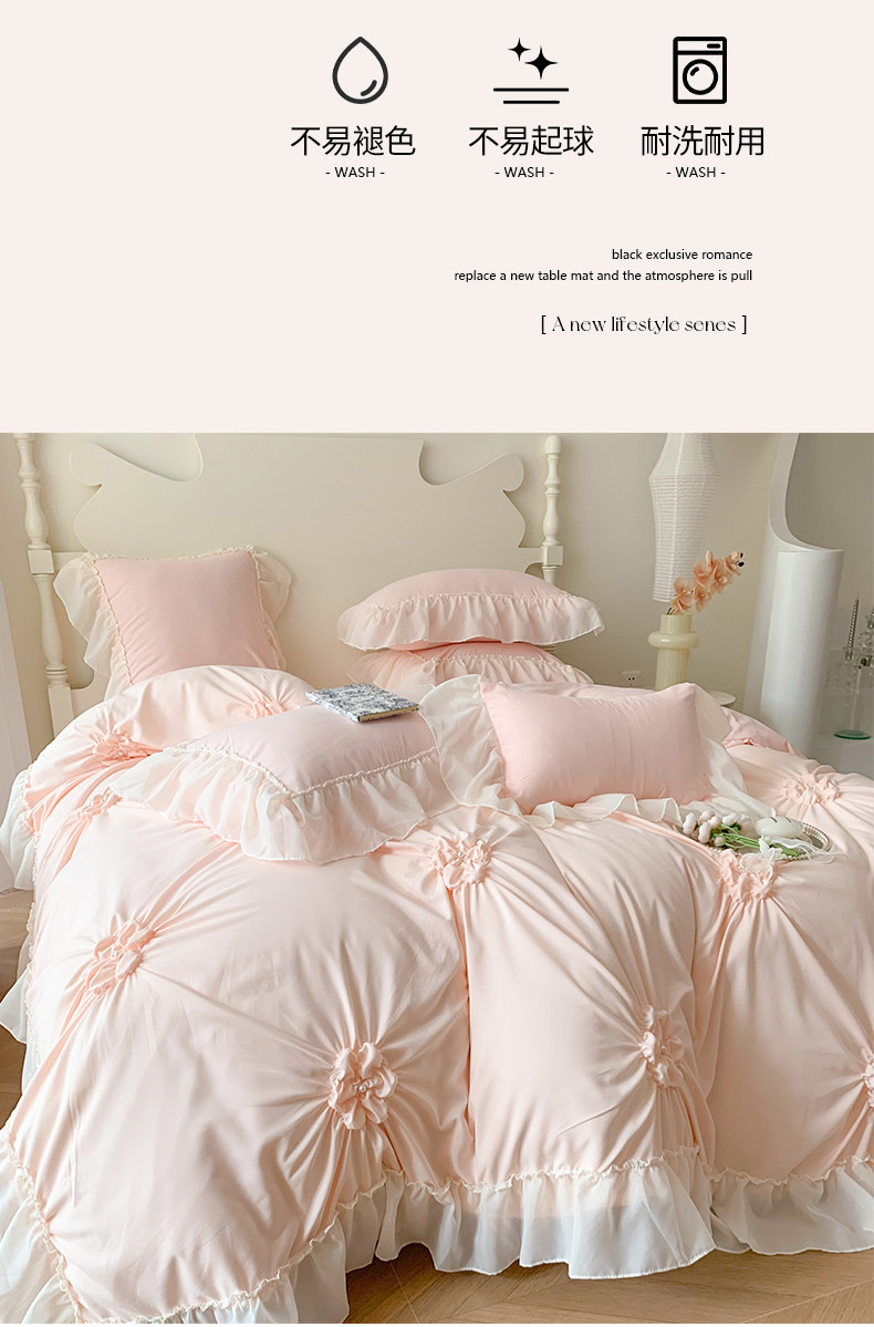 商品名称:吾欢心 2025新款珍妮系列珍珠揪花四件套 珍妮粉