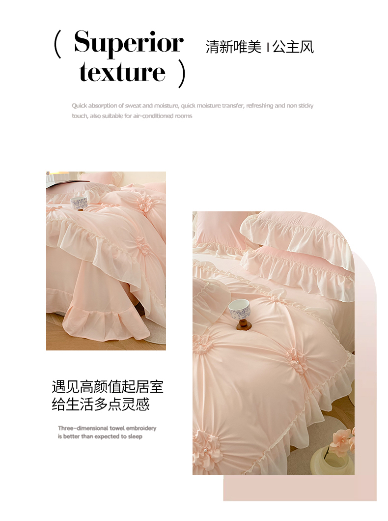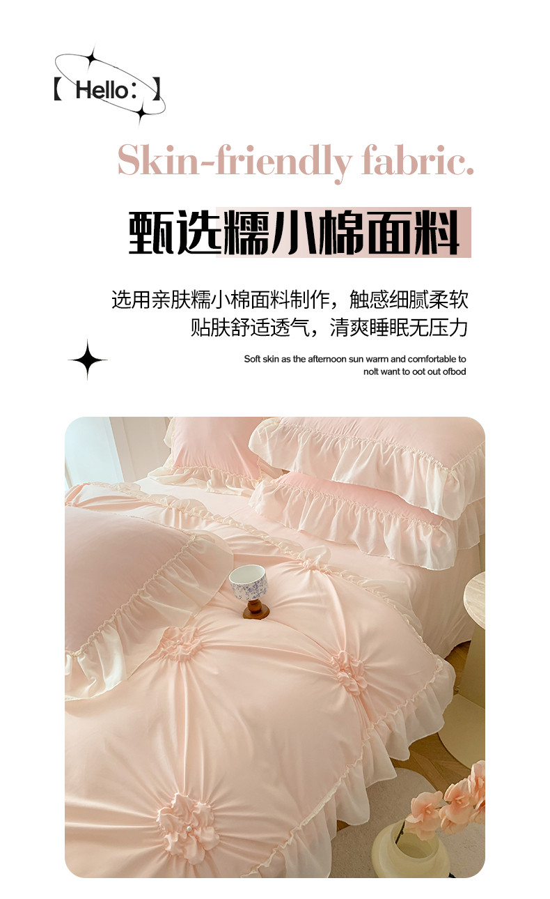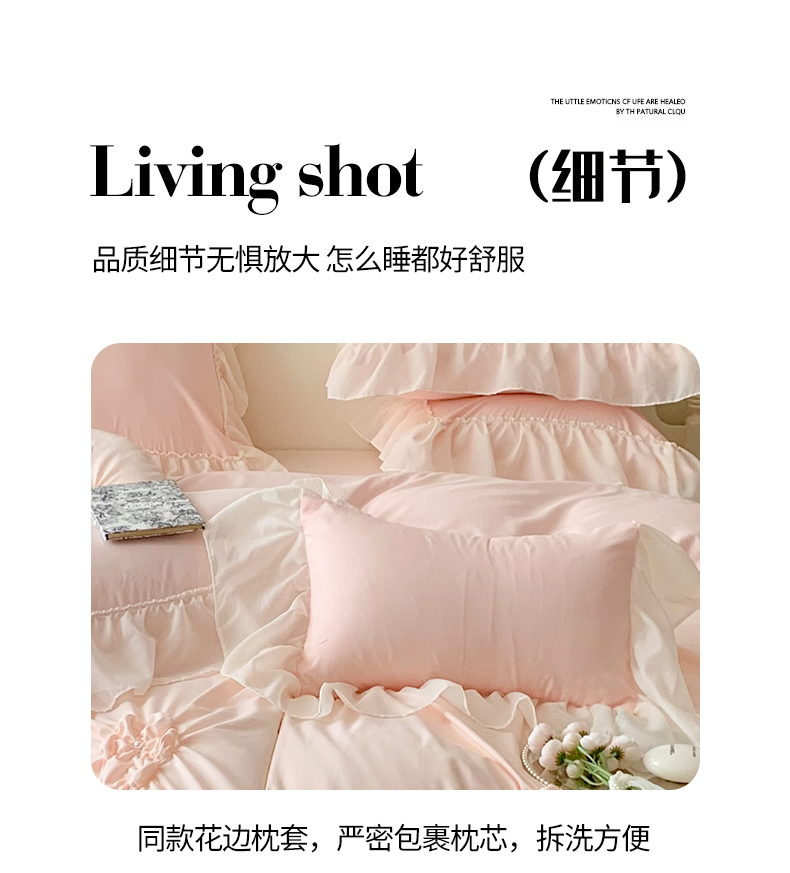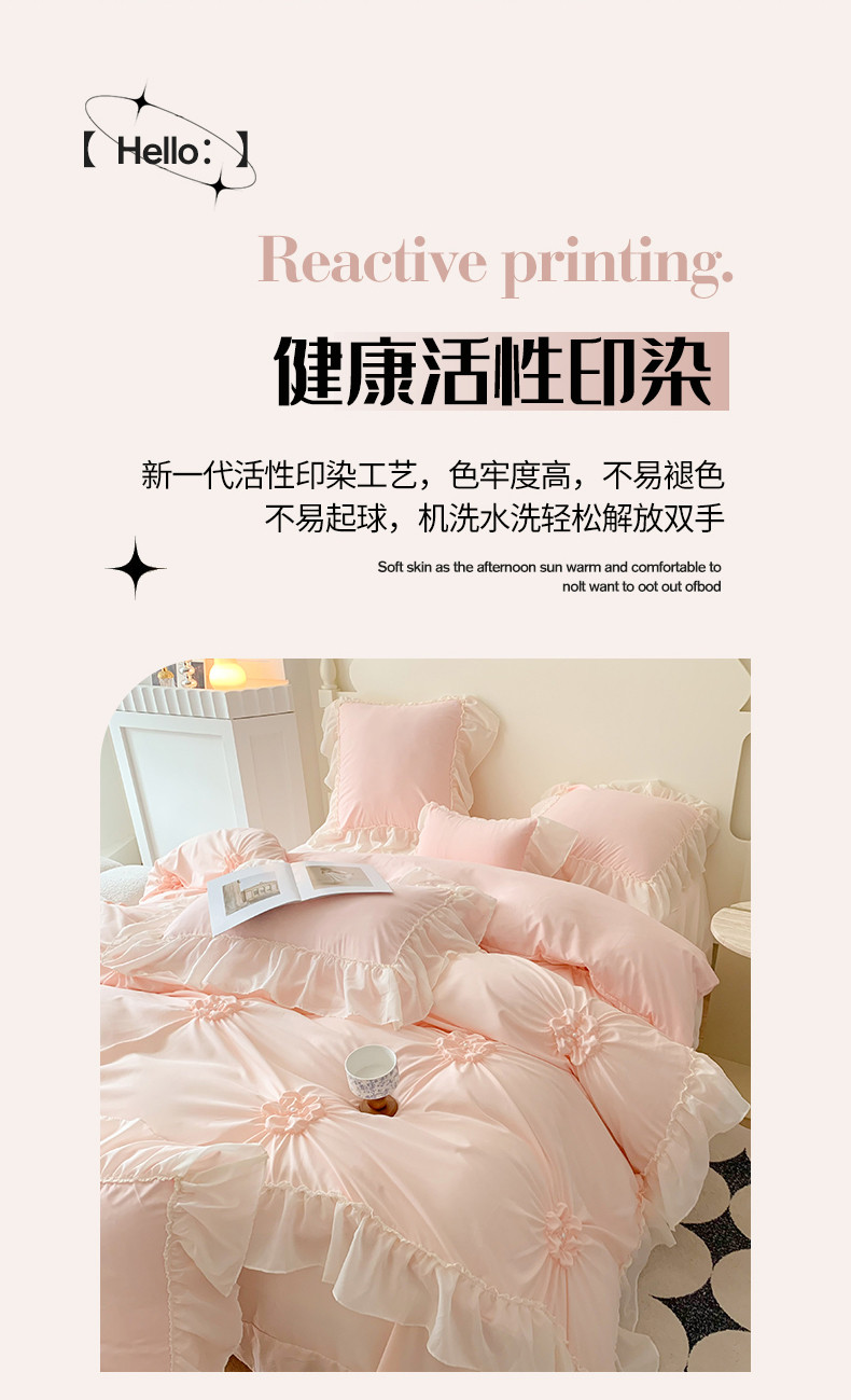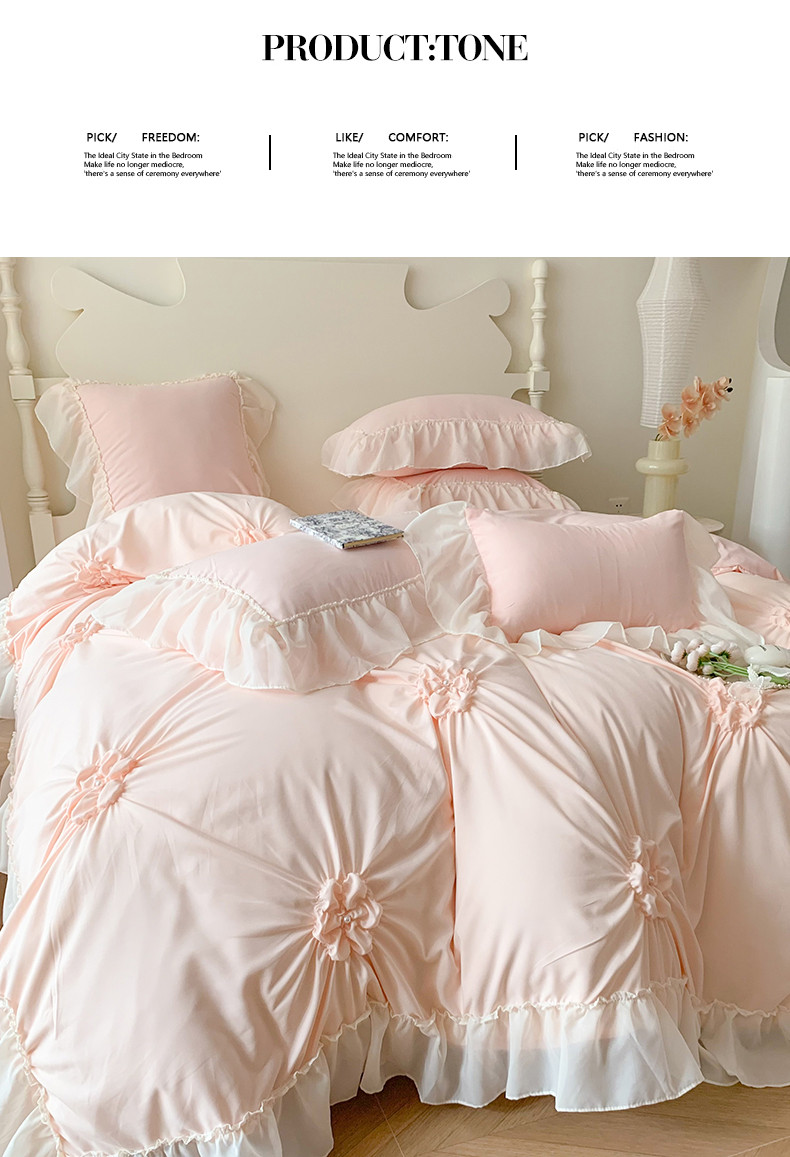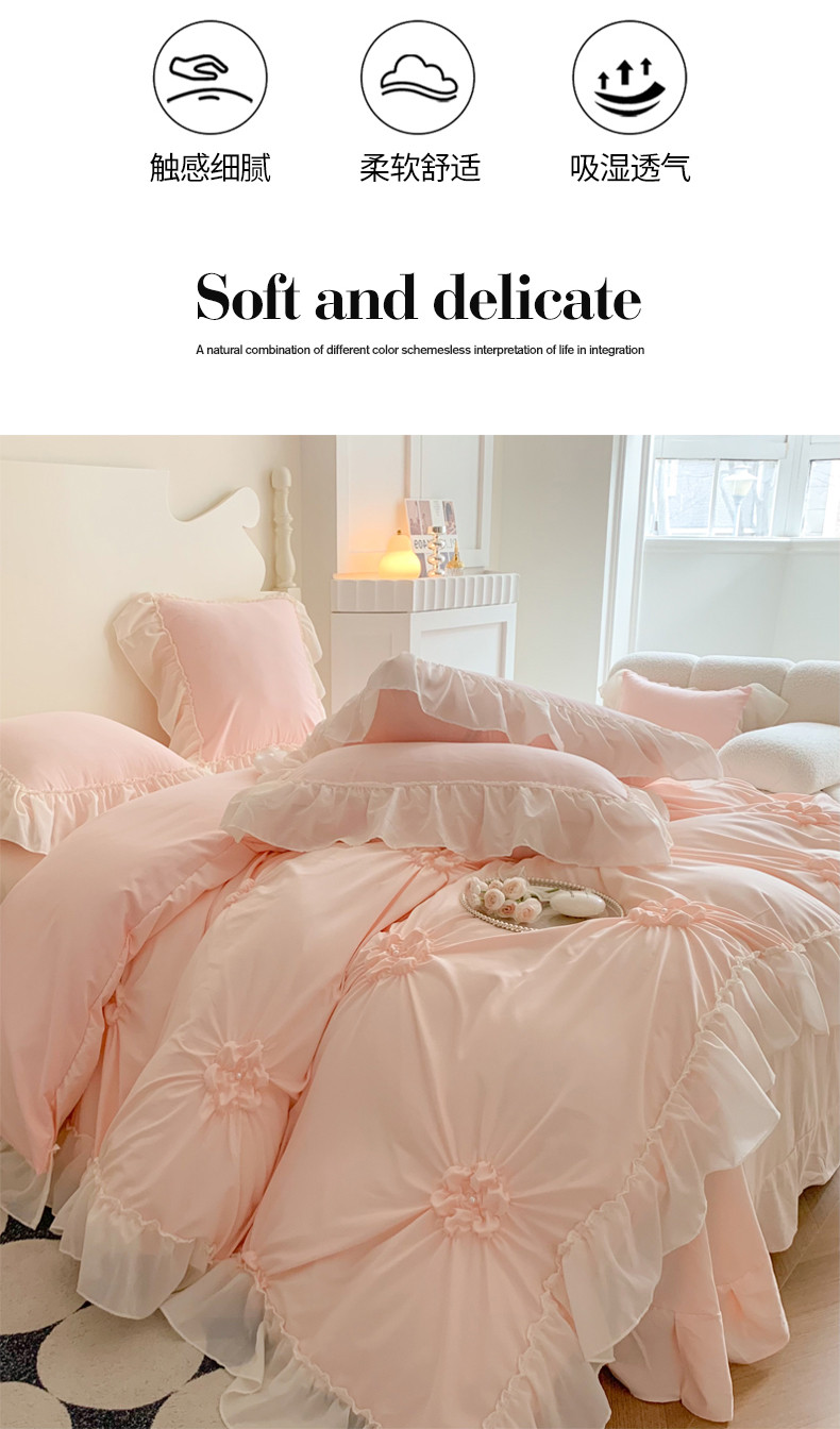 商品名称:吾欢心 2025新款珍妮系列珍珠揪花四件套 珍妮粉