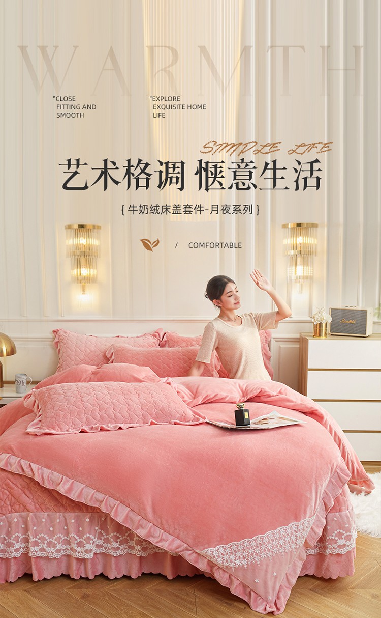 漫布云家纺2023新款浪漫花语秋冬保暖加厚牛奶绒夹棉床盖四件套
