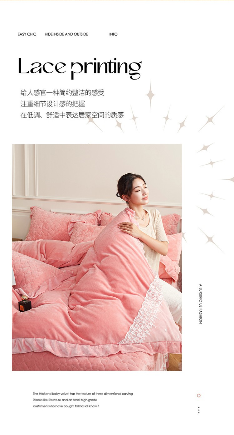 商品名称:漫布云家纺2023新款浪漫花语秋冬保暖加厚牛奶绒夹棉床盖四件套