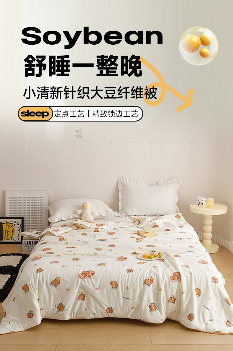 (总)优被业 2025新款A类全棉小清新大豆夏被,KT猫,宁夏,小夜猫,小迷糊,快乐小狗,泡泡糖,草莓园,集美