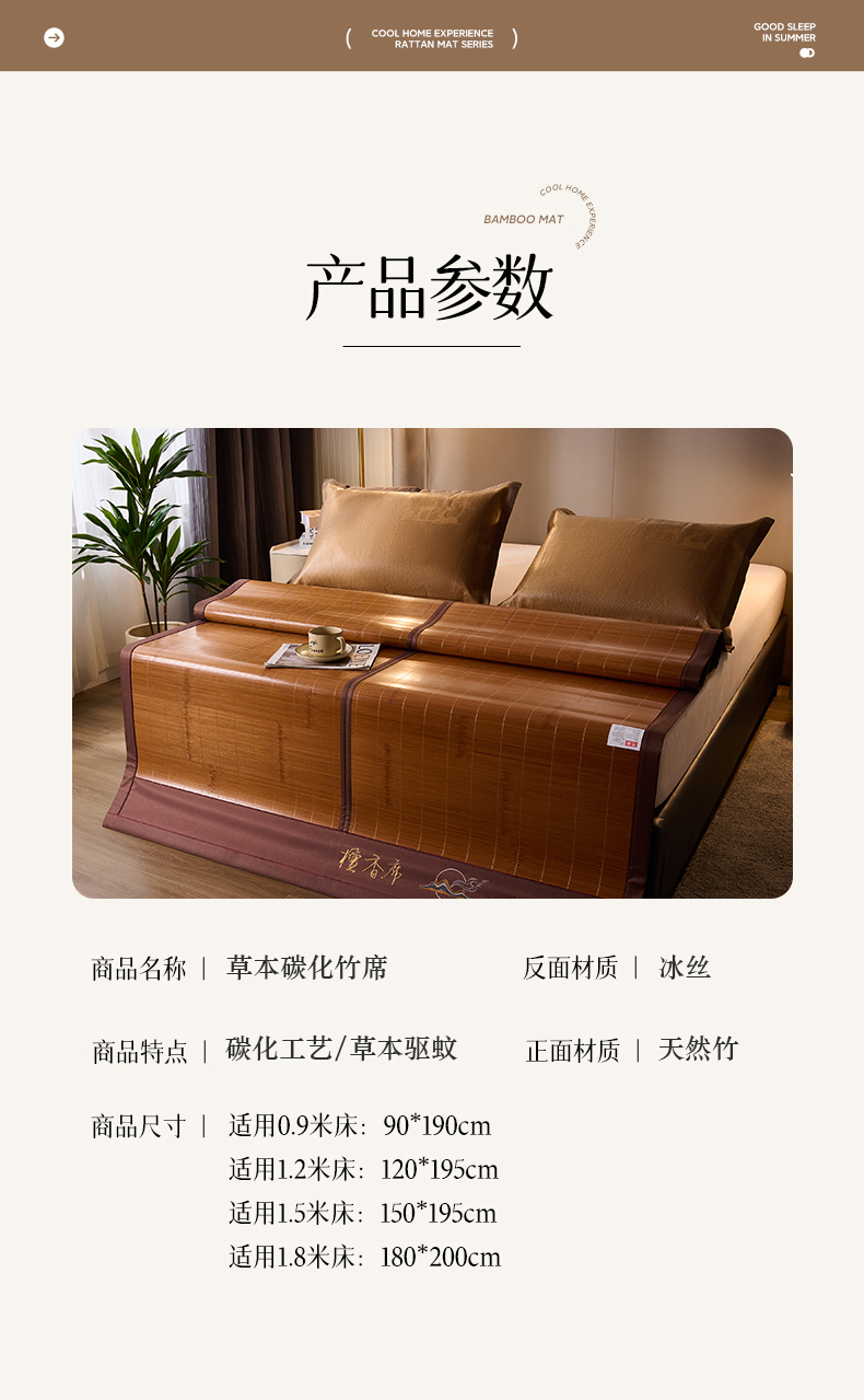 当前位置: 91家纺网 > 商品网购 > 床上用品 > 凉席 > 竹席 > 鑫琪莱家纺 2024新款草本竹席系列 草本-檀香