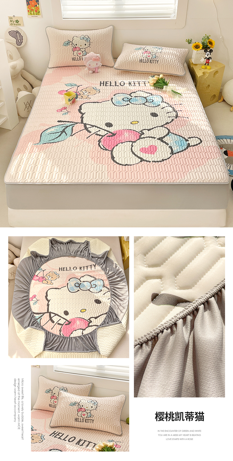 商品名称:米帛家纺 2024新款大版三丽鸥A类凉感丝乳胶凉席-床笠款 樱桃凯蒂猫