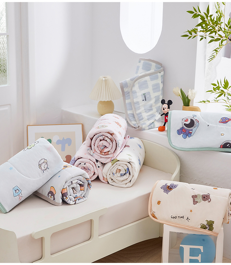 (总)丝涟家居 2025新款婴儿裸睡级凉感针织毯幼儿园夏被儿童夏被毯子,小挖机,动物乐园,熊猫乐园,小恐龙,波点狗,草莓熊,木马熊,乖乖兔,田园兔