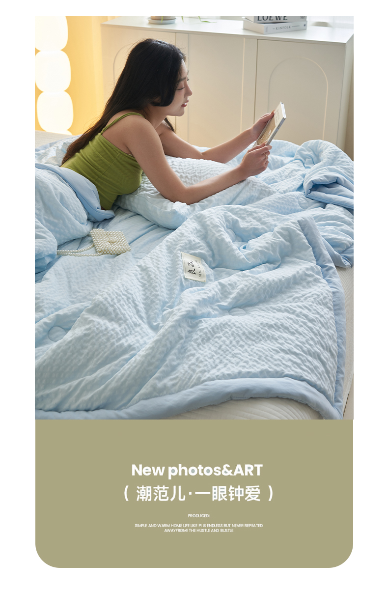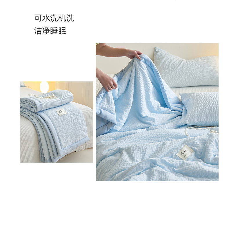 商品名称:2024子由家居b类水洗棉泡泡格大豆纤维夏被 泡泡格-天蓝