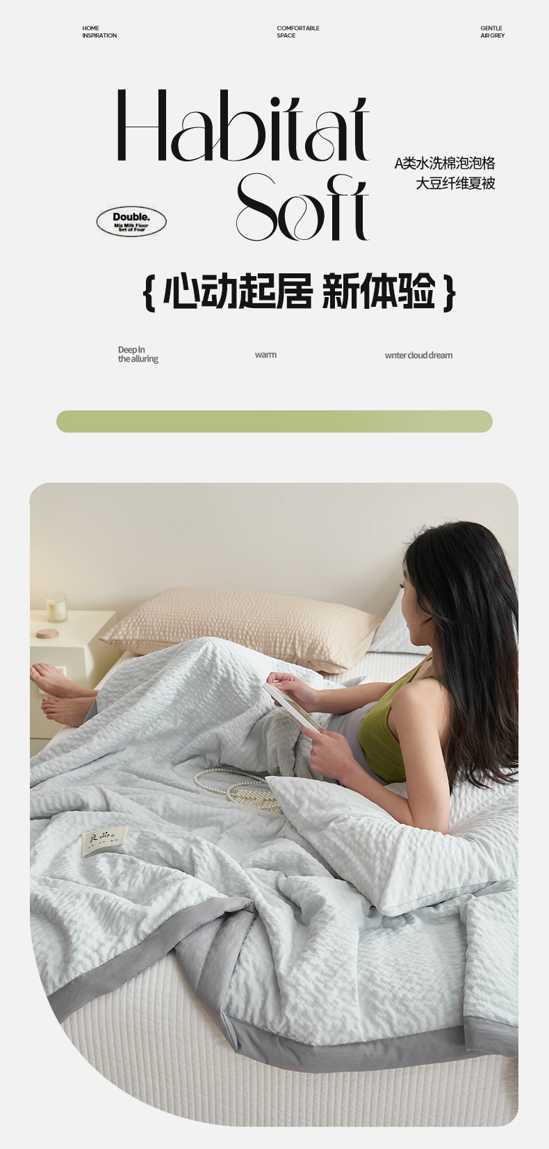 (总)子由家居 2025新款良品格大豆子母冬被被子被芯,子母被-白+灰,子母被-白+绿,子母被-白+杏,子母被-灰+驼