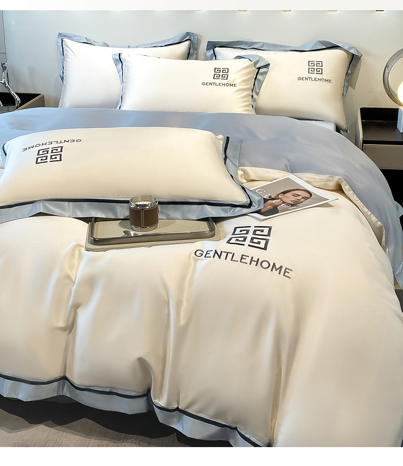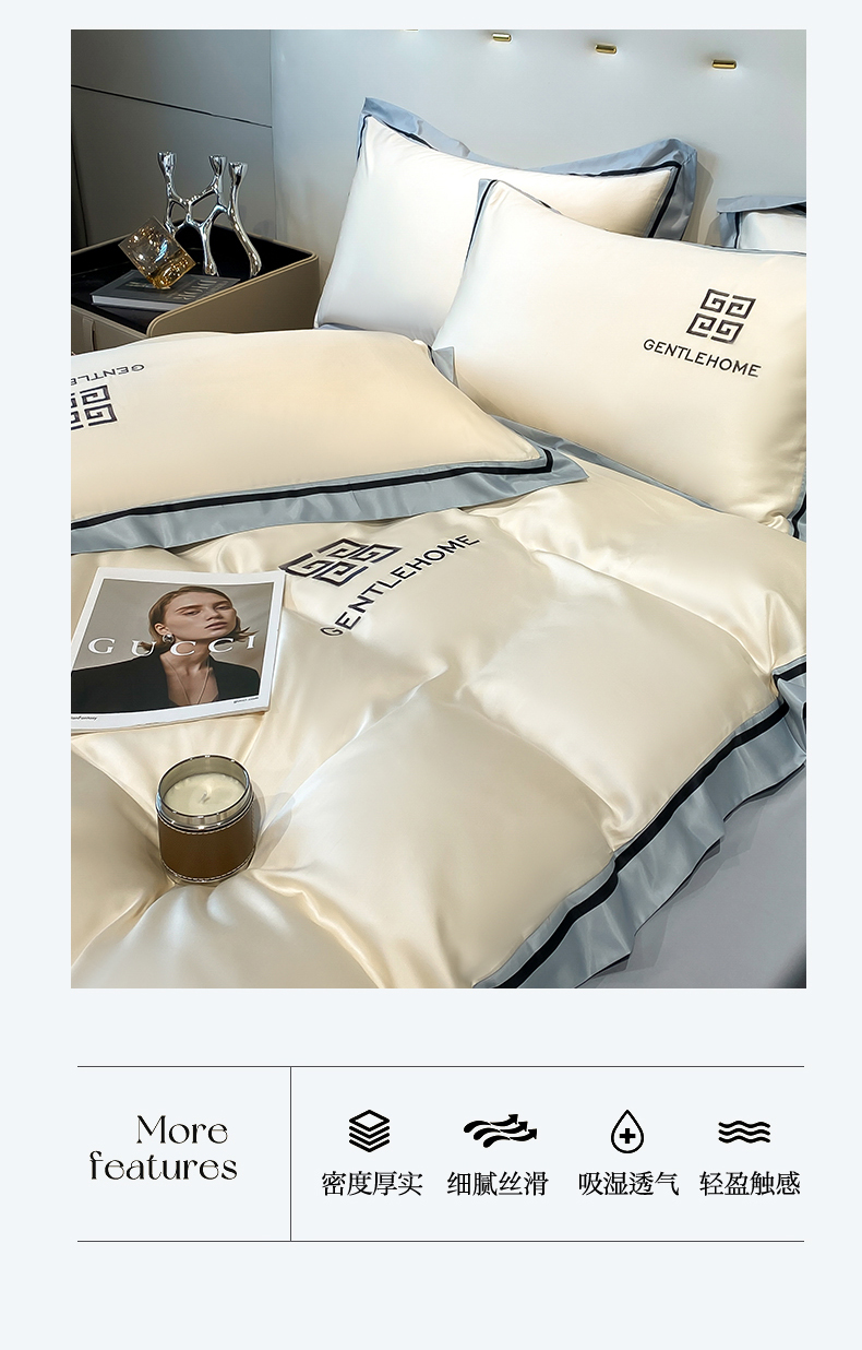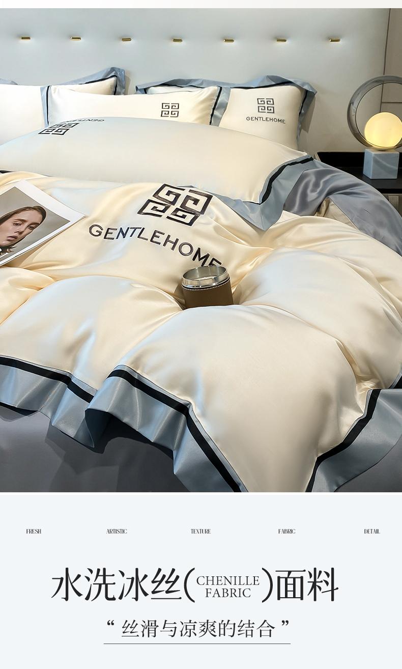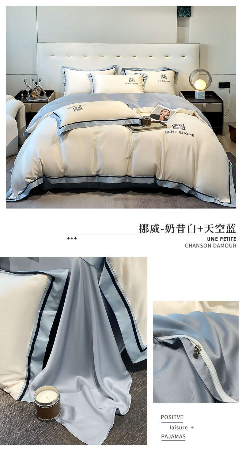 商品名称:眷恋家纺 2024新品水洗真丝宽边四件套-挪威系列 挪威-奶昔白+海清