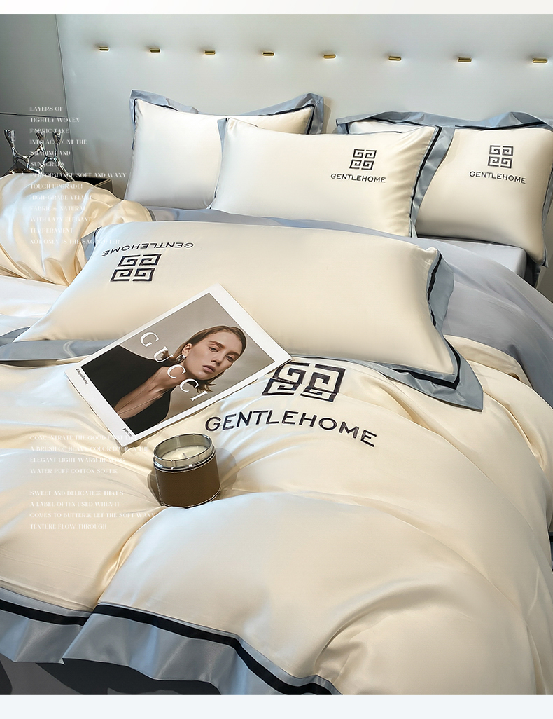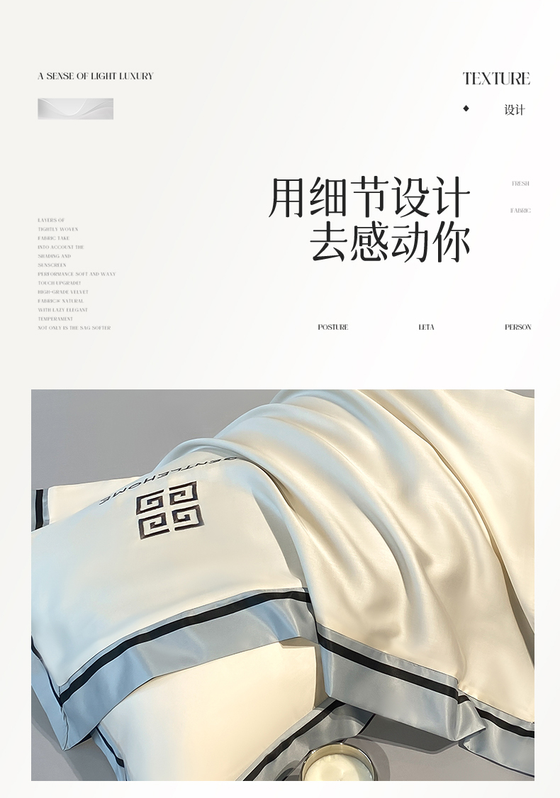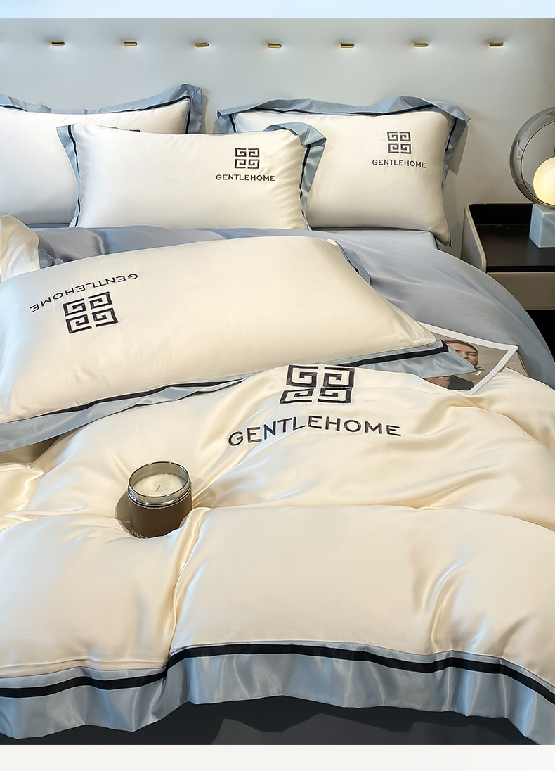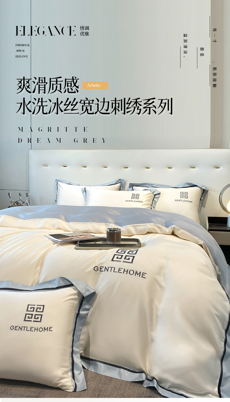 商品名称:眷恋家纺 2024新品水洗真丝宽边四件套-挪威系列 挪威-奶昔白+海清