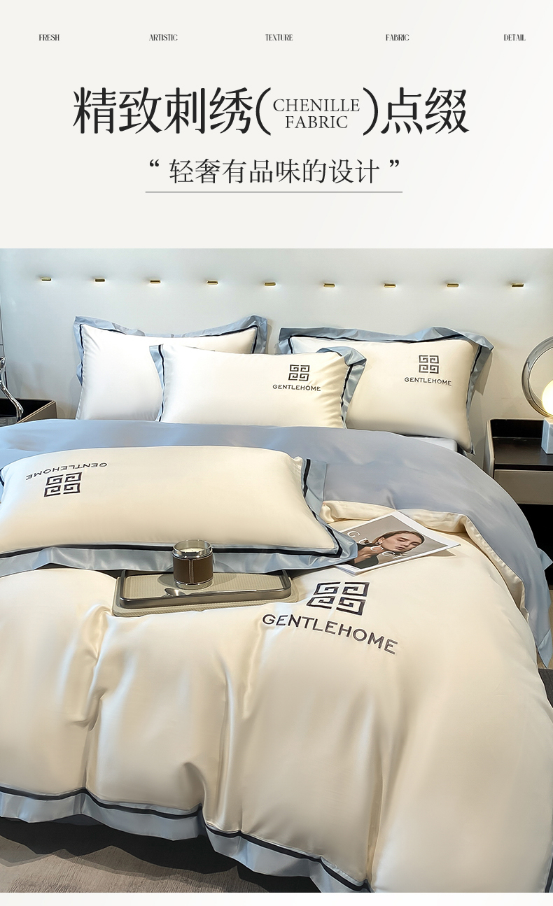 眷恋家纺 2024新品水洗真丝宽边四件套-挪威系列 挪威-奶昔白+海清