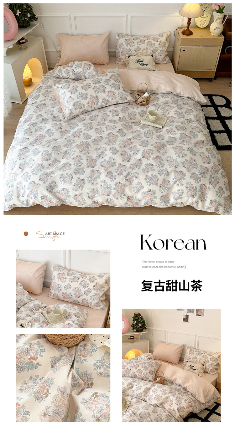 商品名称:昔可家纺 2024韩式碎花四件套 复古甜山茶
