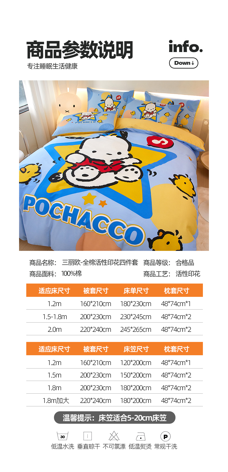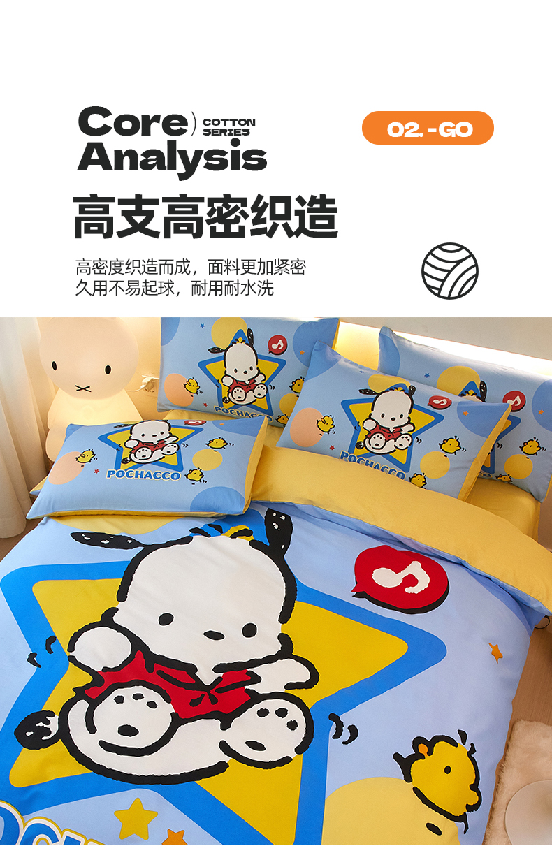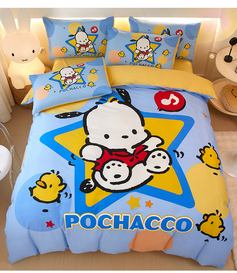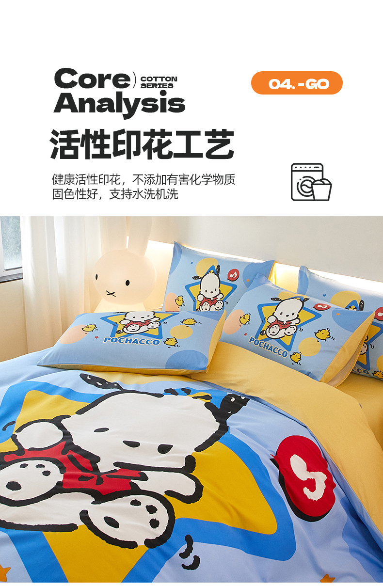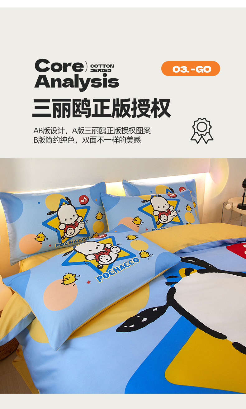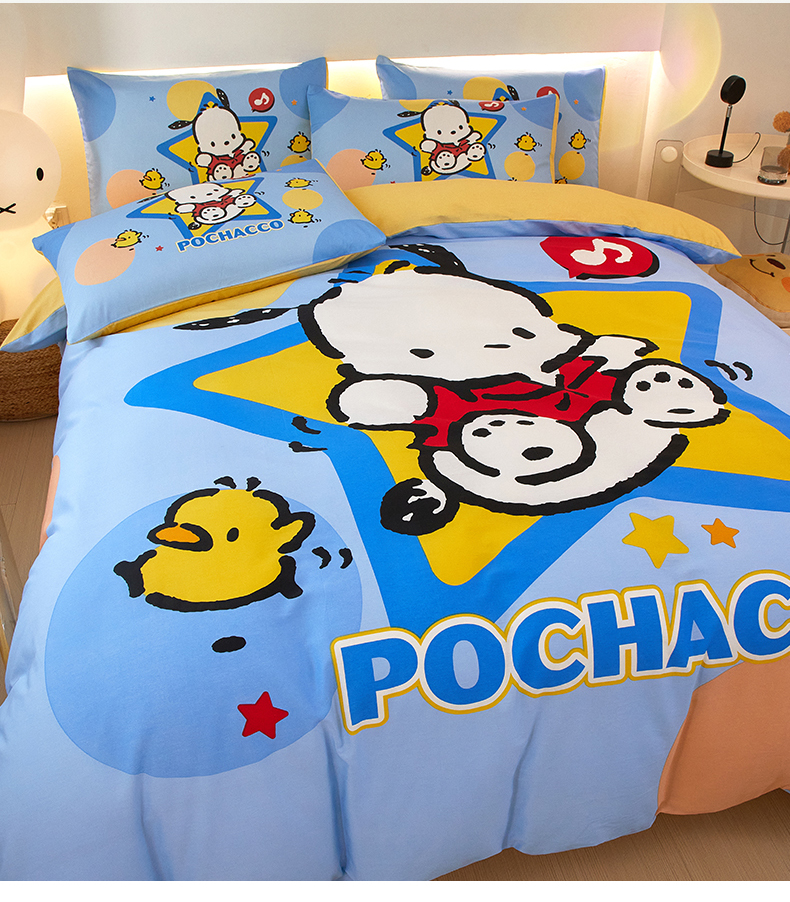 当前位置: 91家纺网 > 商品网购 > 床品套件 > 四件套 > 全棉活性四件套 > 鑫帝家居 2025新款全棉活性印花四件套---三丽鸥系列 欢乐帕恰狗