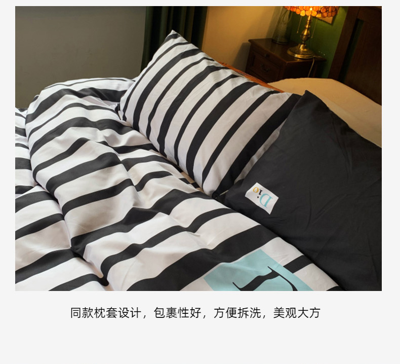 商品名称:色鬼布艺 2024新款花沐春夏云朵水洗棉四件套 【云朵棉】条纹迪