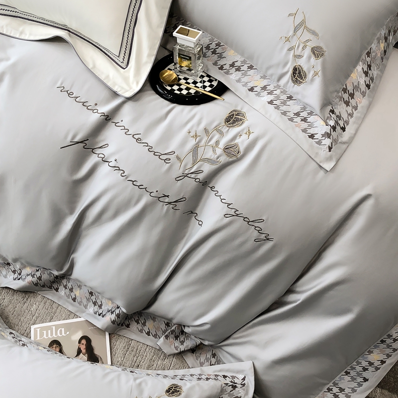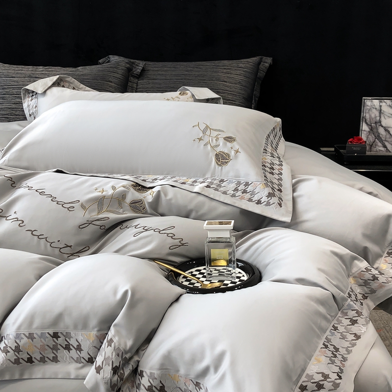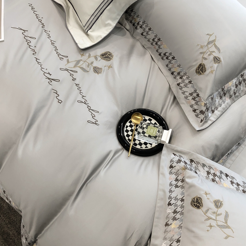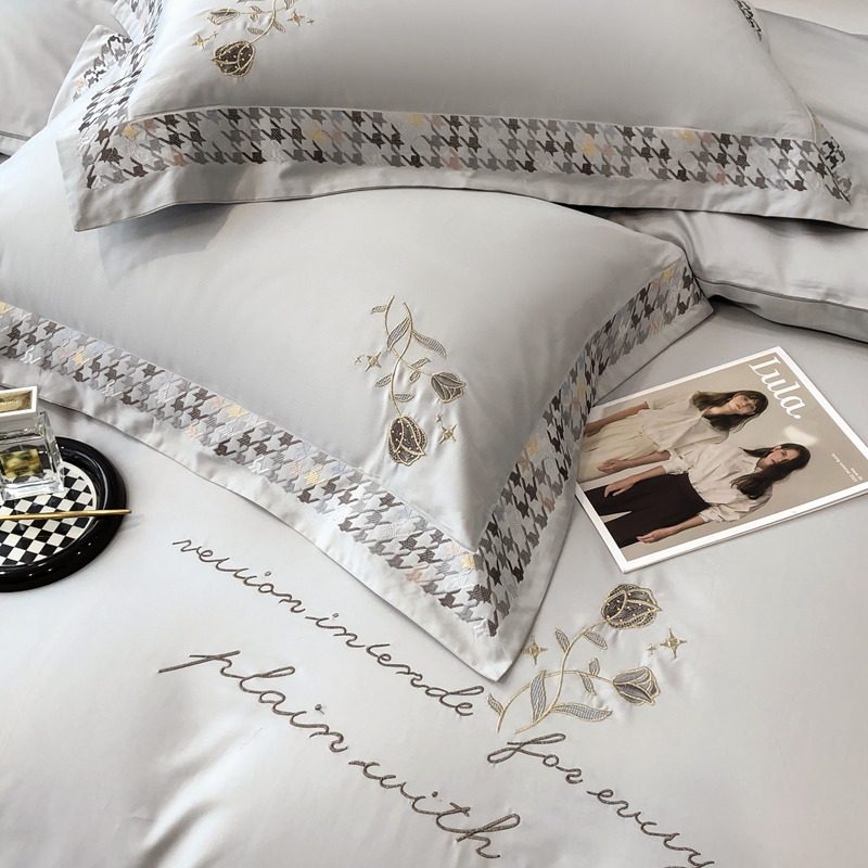 若未家居 2025新款长绒棉高精密刺绣款百万针工艺套件 千鸟格刺绣-锦簇 时尚灰