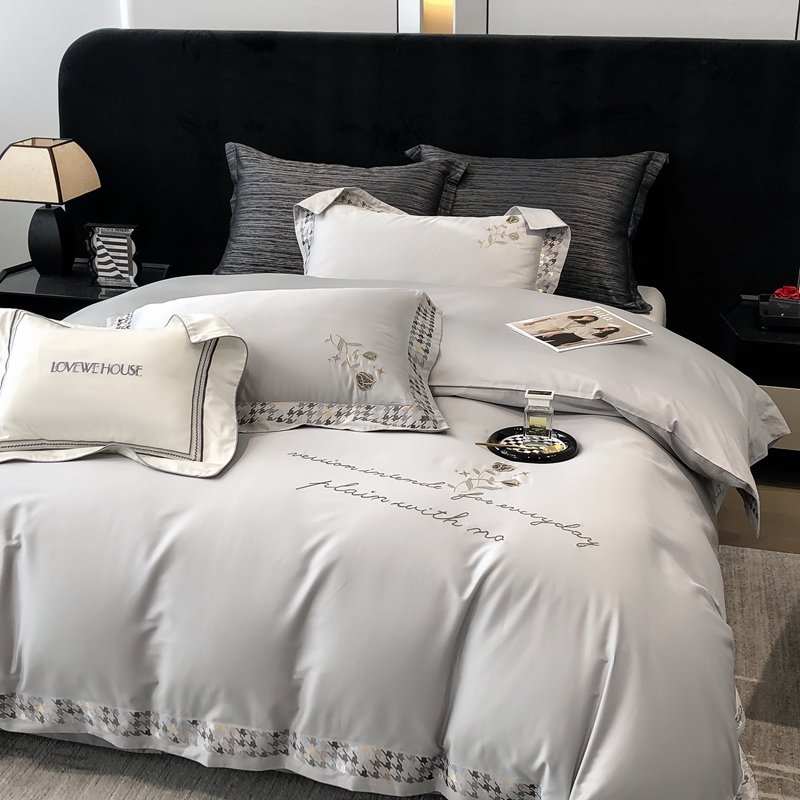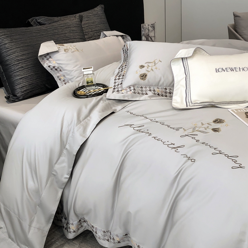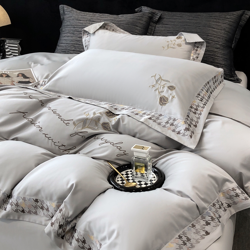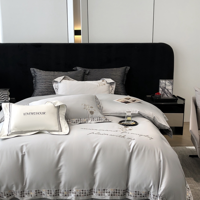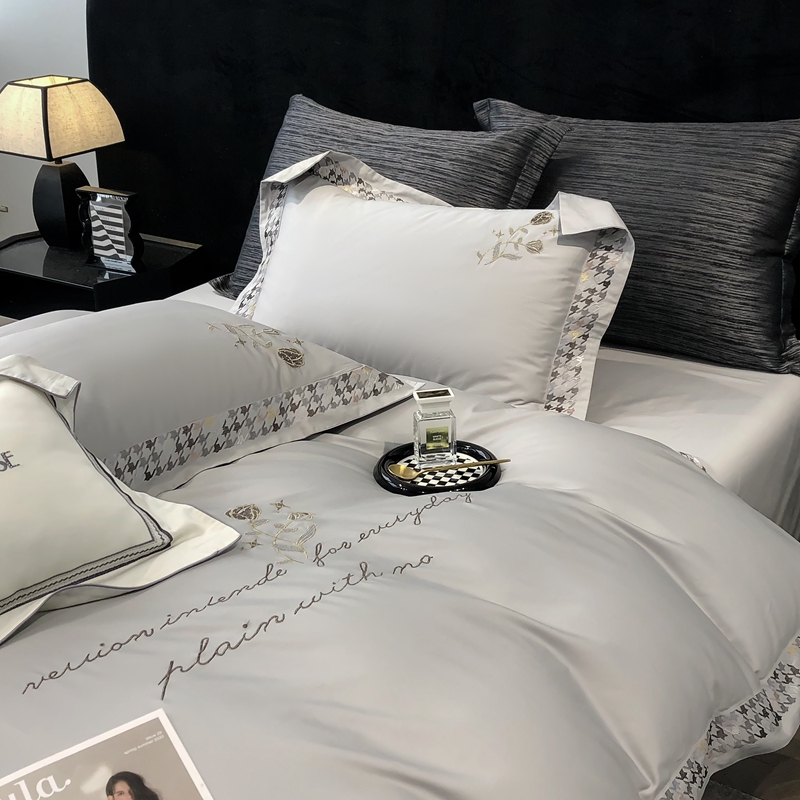 (总)若未家居2023新款轻奢意式50支全棉长绒棉四件套-水墨,贵族白,雾棕,烟蓝
