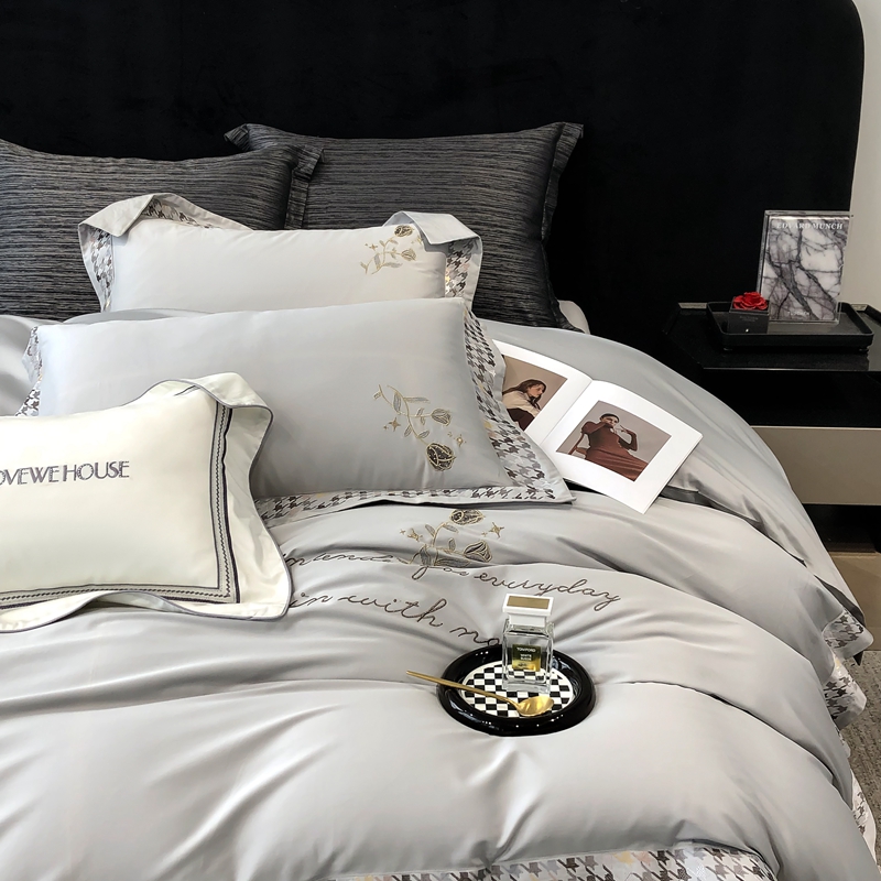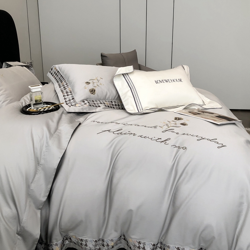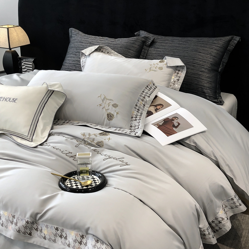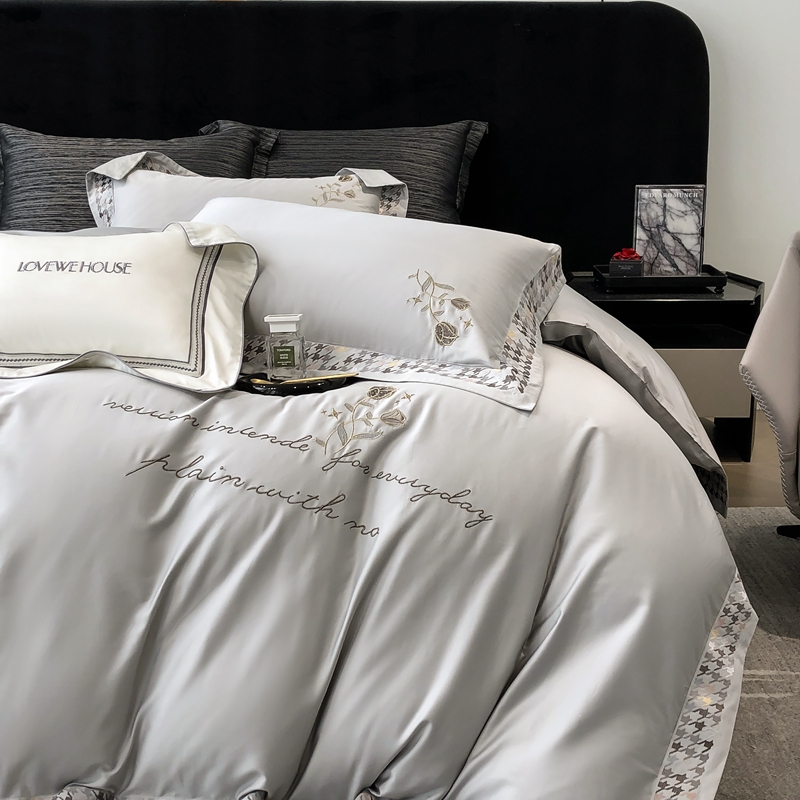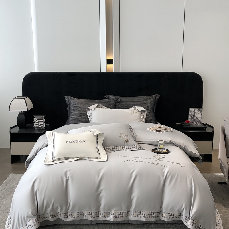 (总)若未家居2023新款轻奢意式50支全棉长绒棉四件套-水墨,贵族白,雾棕,烟蓝