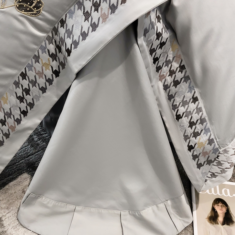 商品名称:若未家居 2025新款长绒棉高精密刺绣款百万针工艺套件 千鸟格刺绣-锦簇 时尚灰