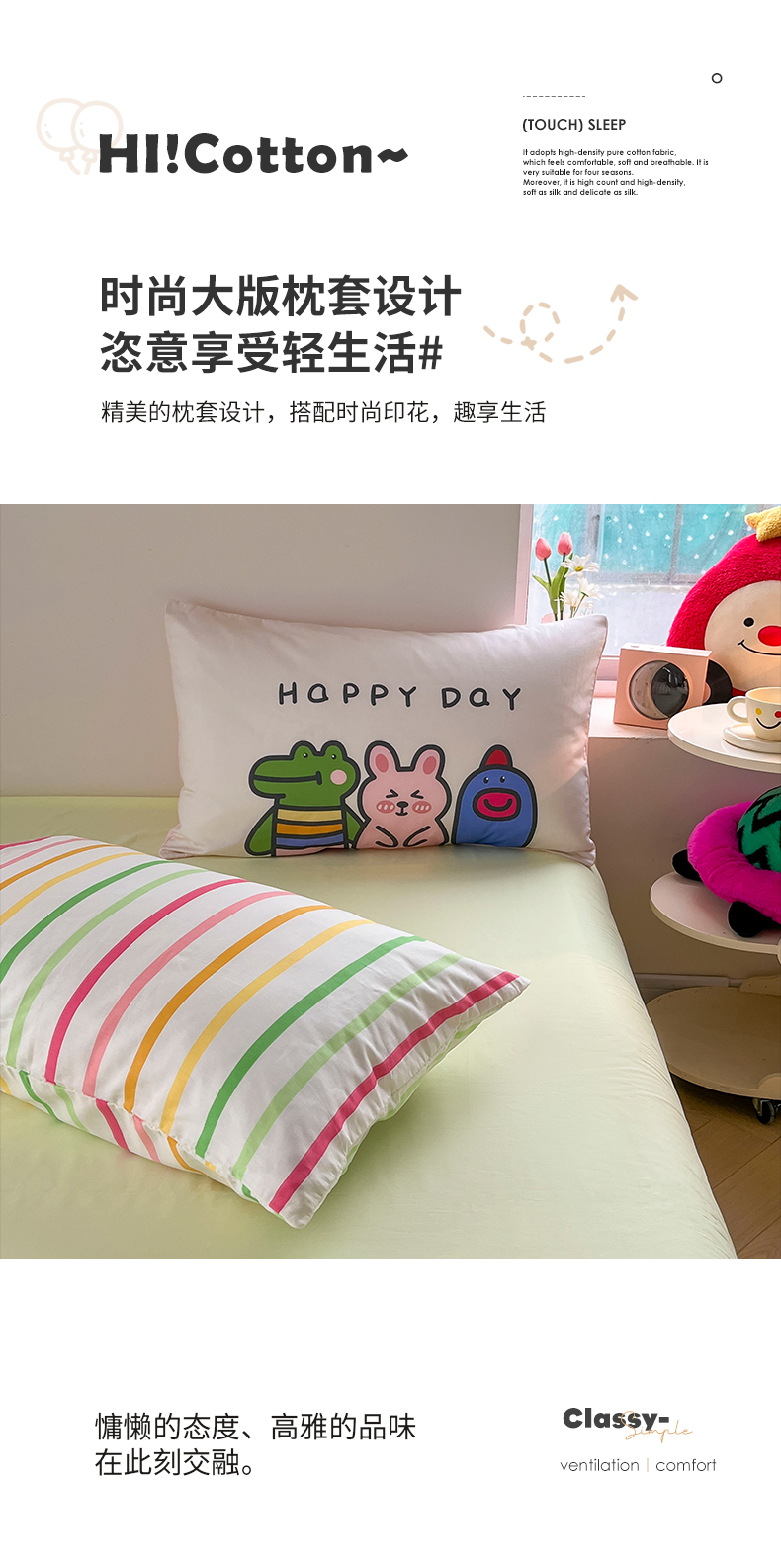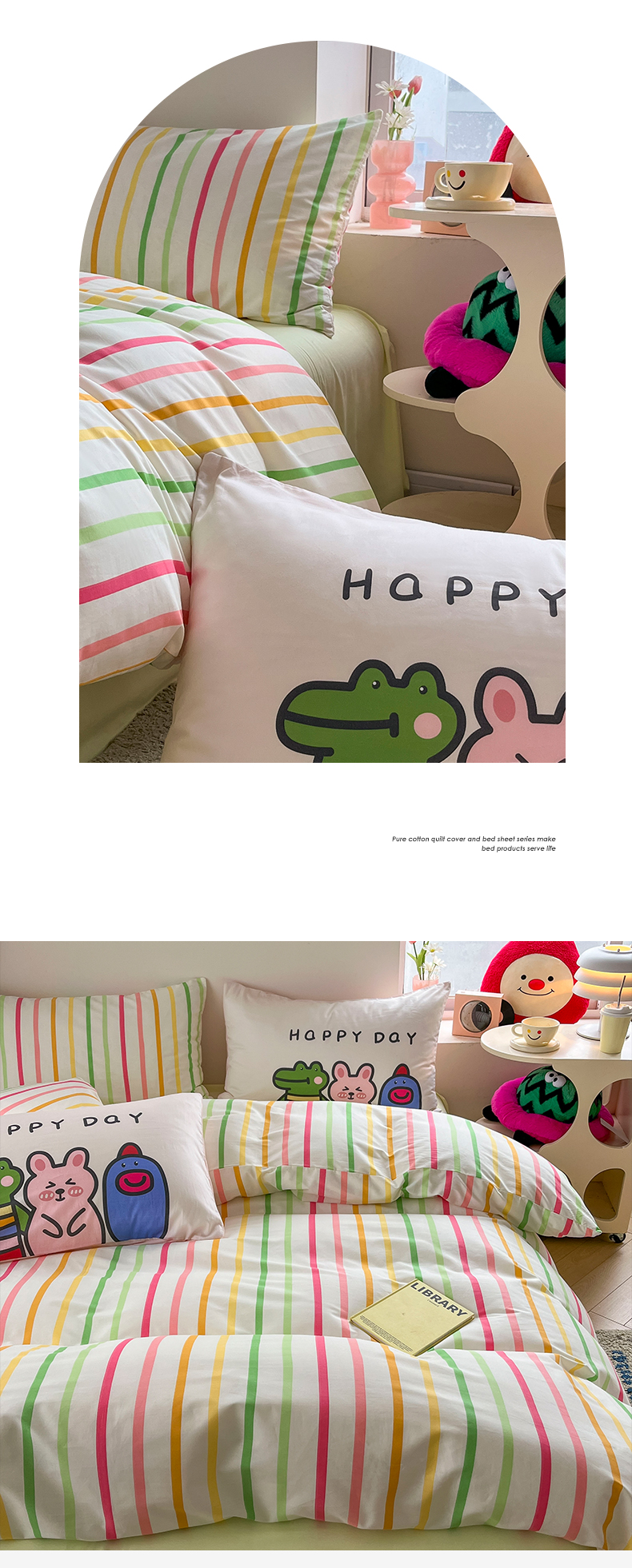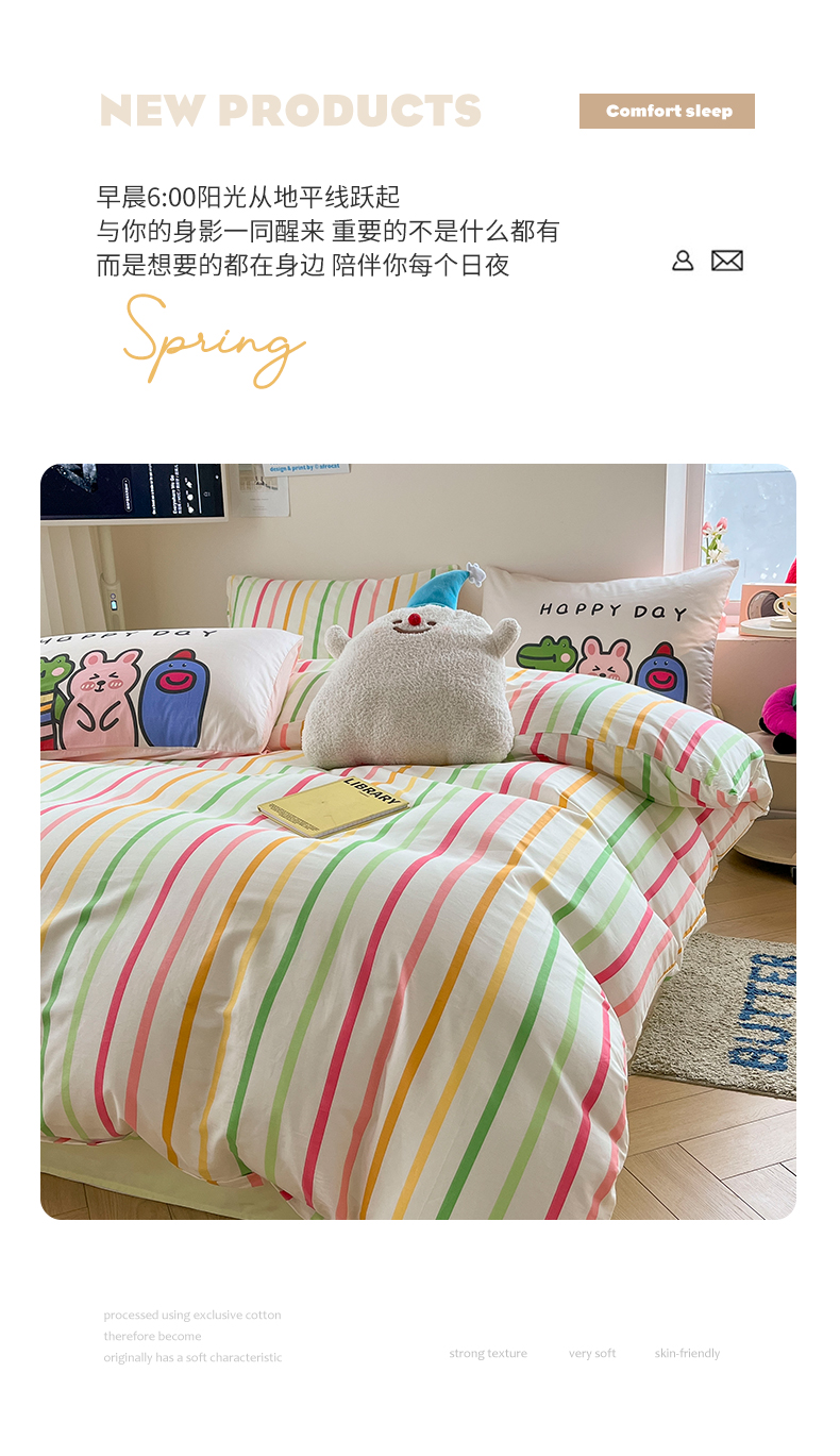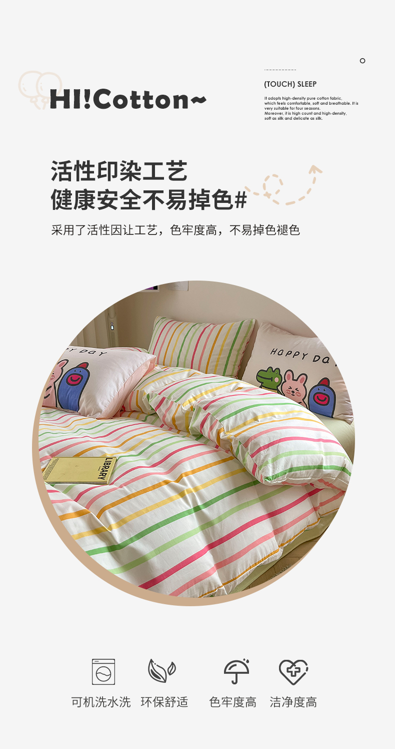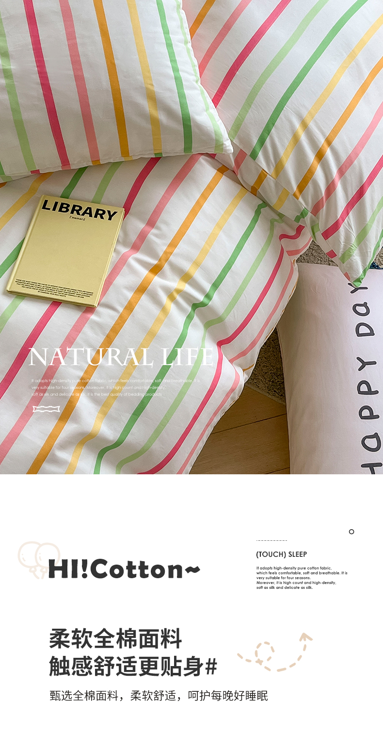 2024新款大版枕套数码印花全棉四件套 彩虹竖条