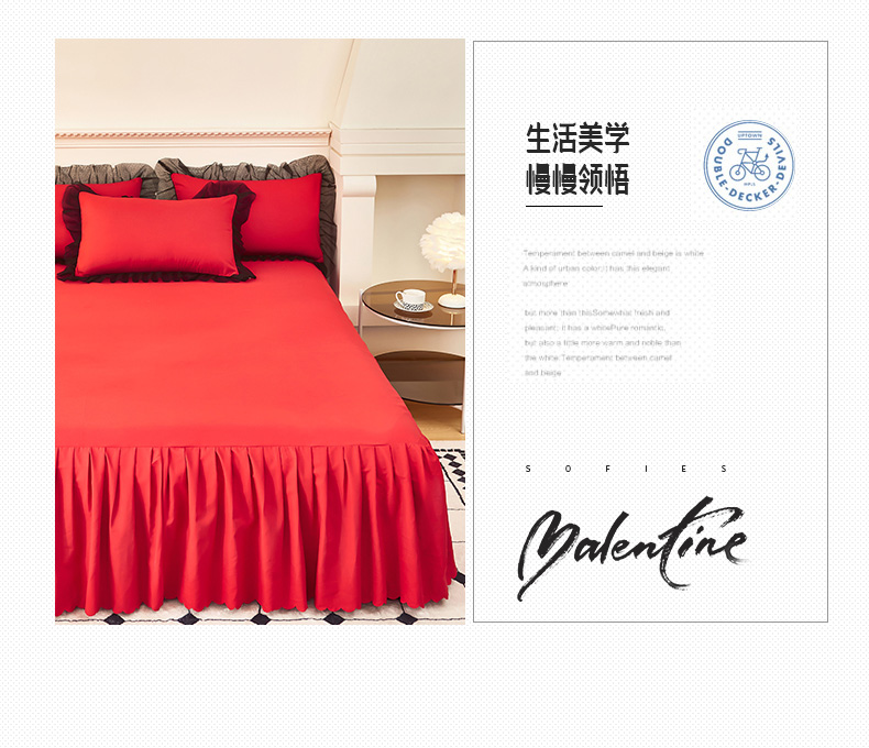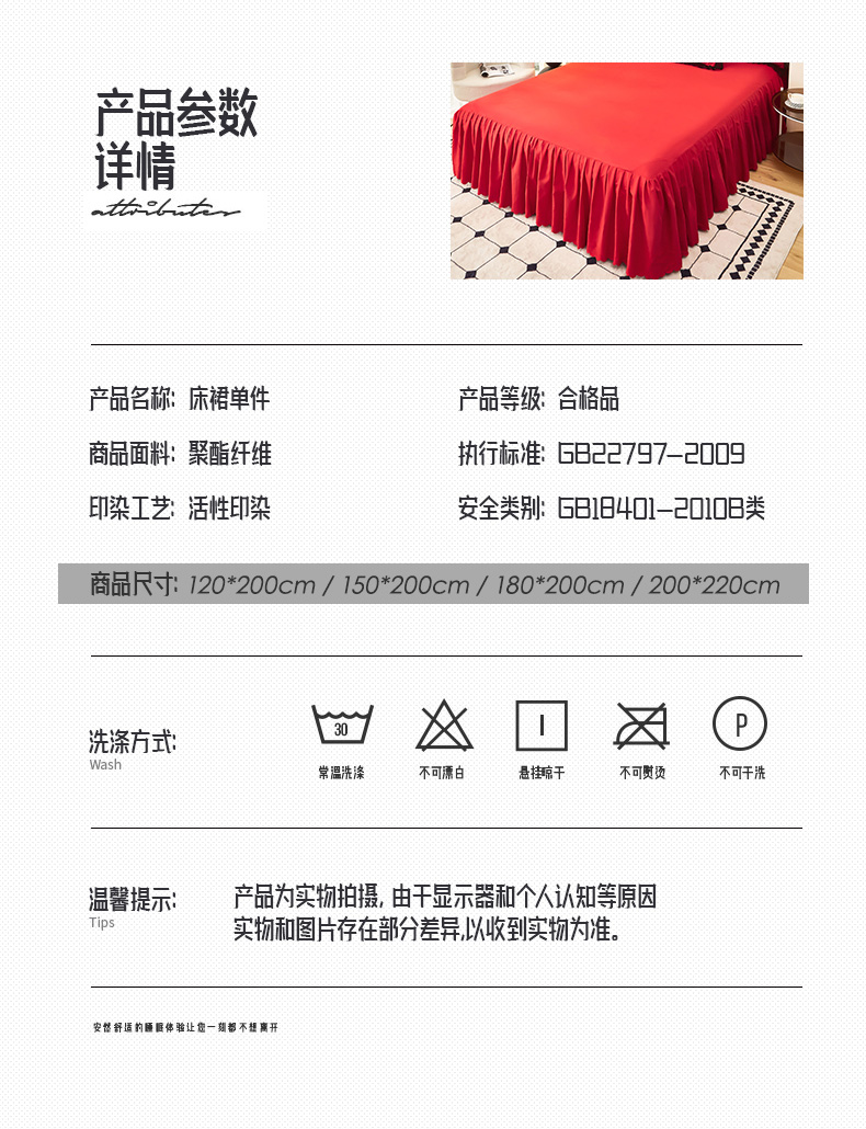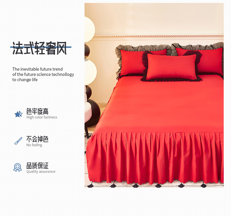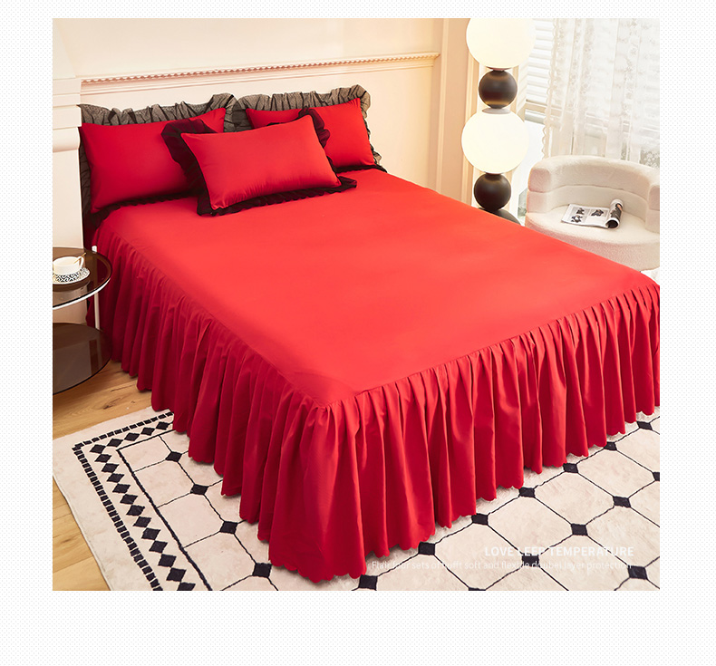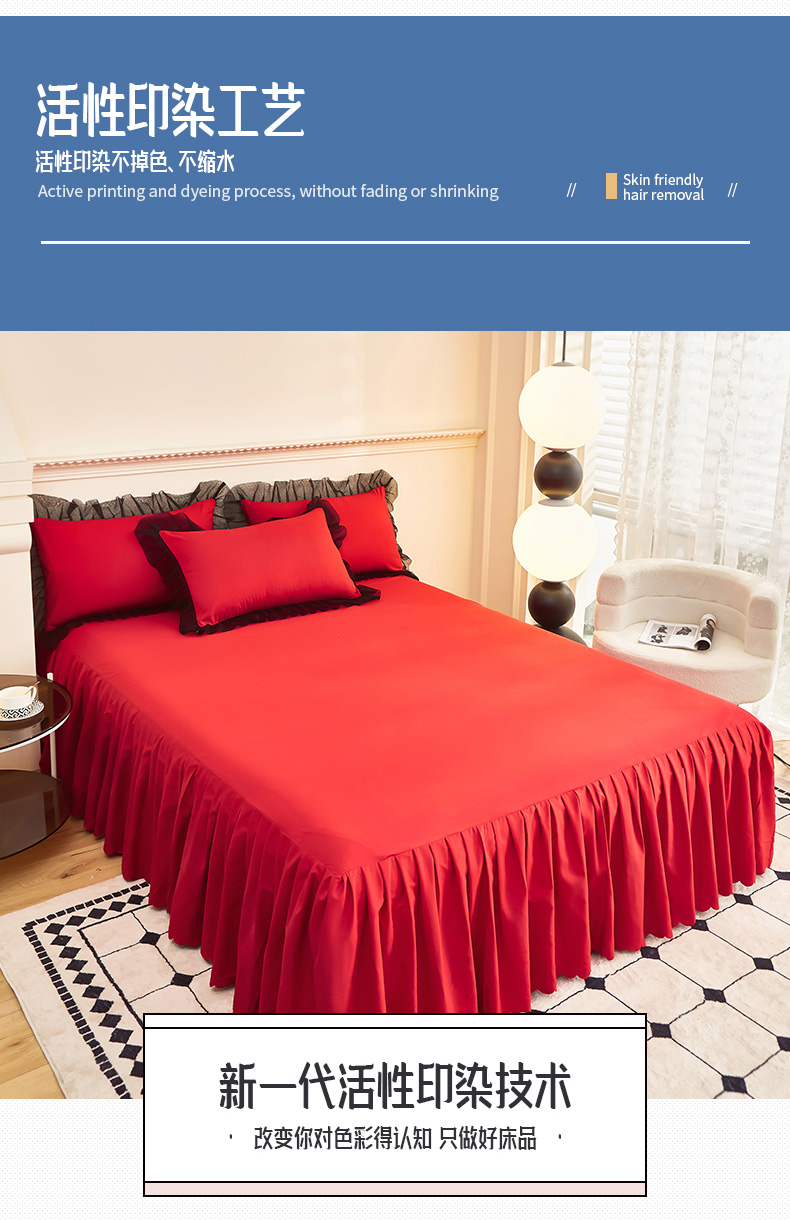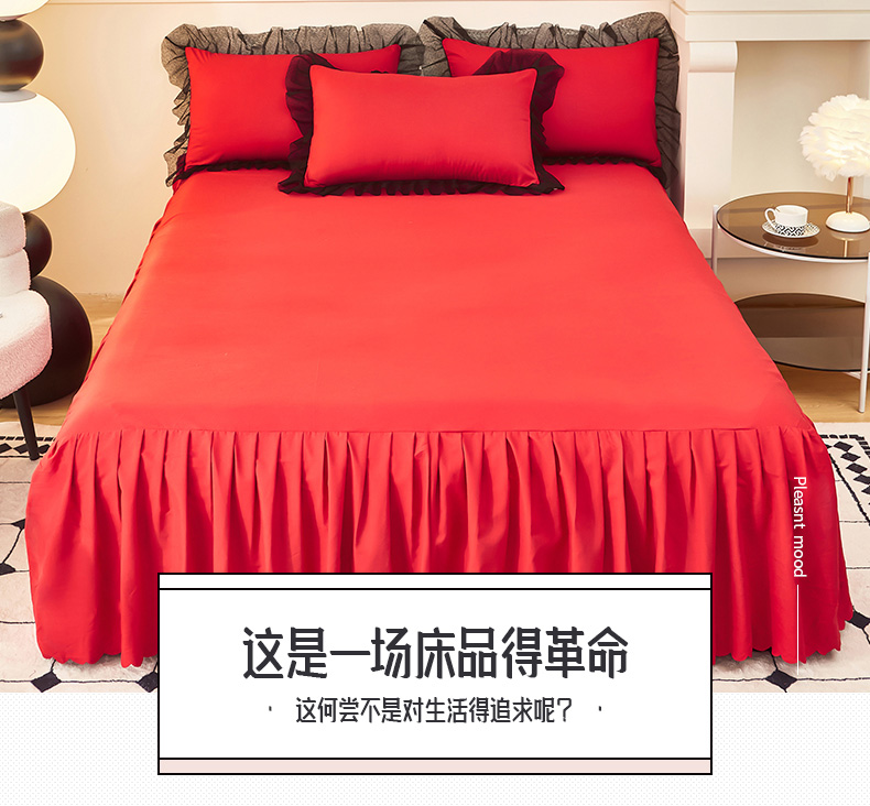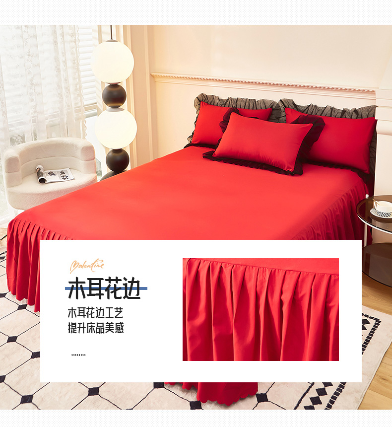商品名称:莉莉安家纺 2025新款亲肤磨毛木耳花边床裙款单床裙 爱丽丝-千禧红
