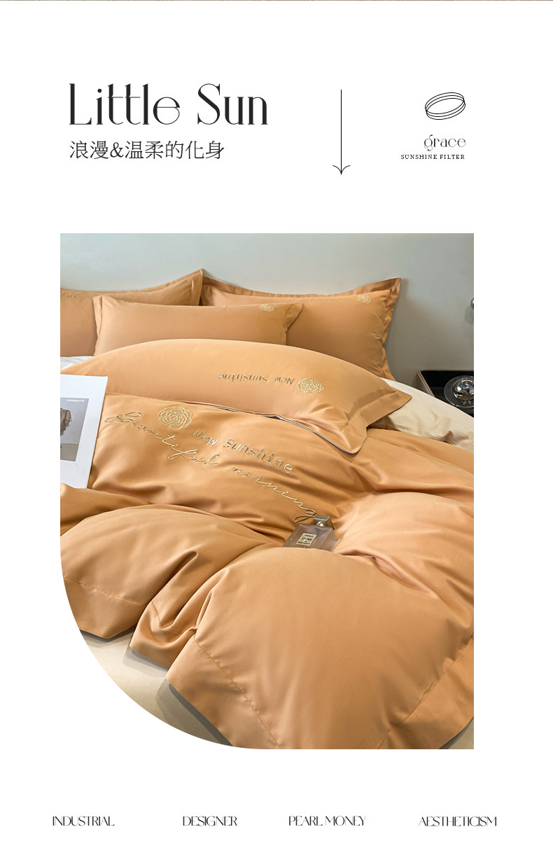 N先生 2024新款轻奢风水洗磨毛刺绣四件套-如梦系列 如梦-橘