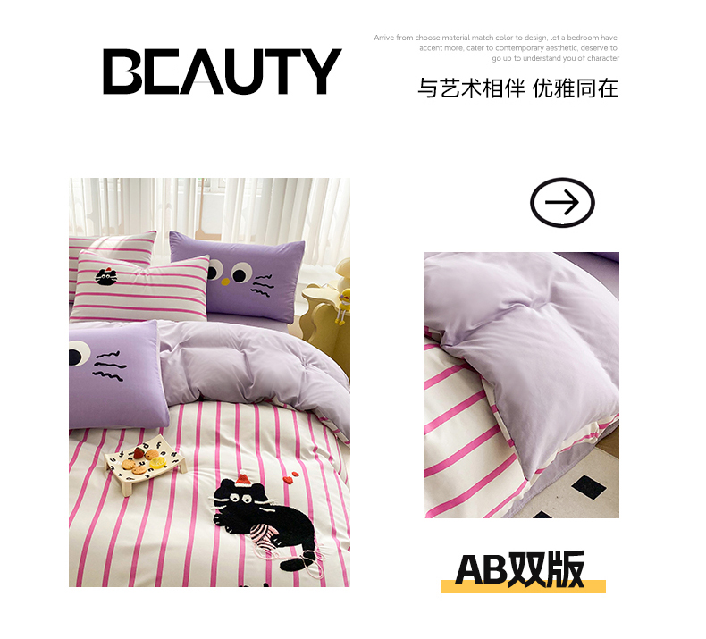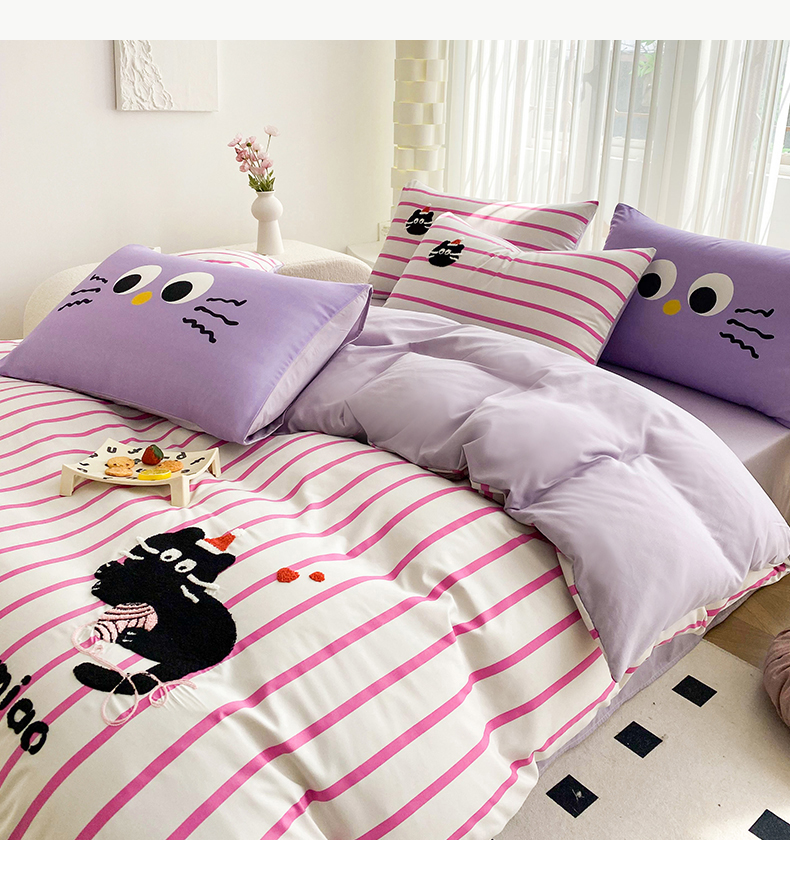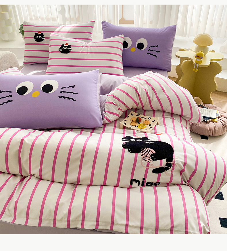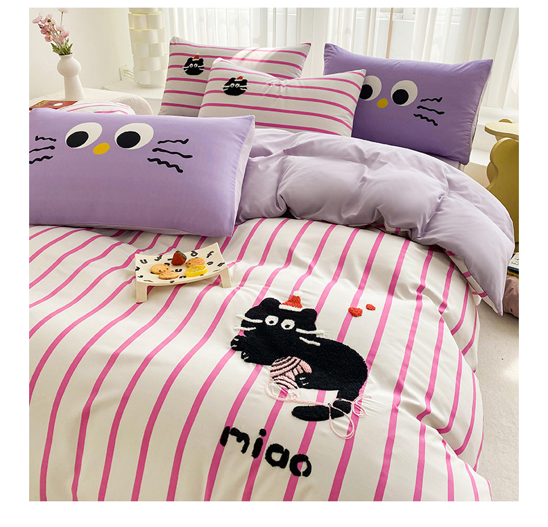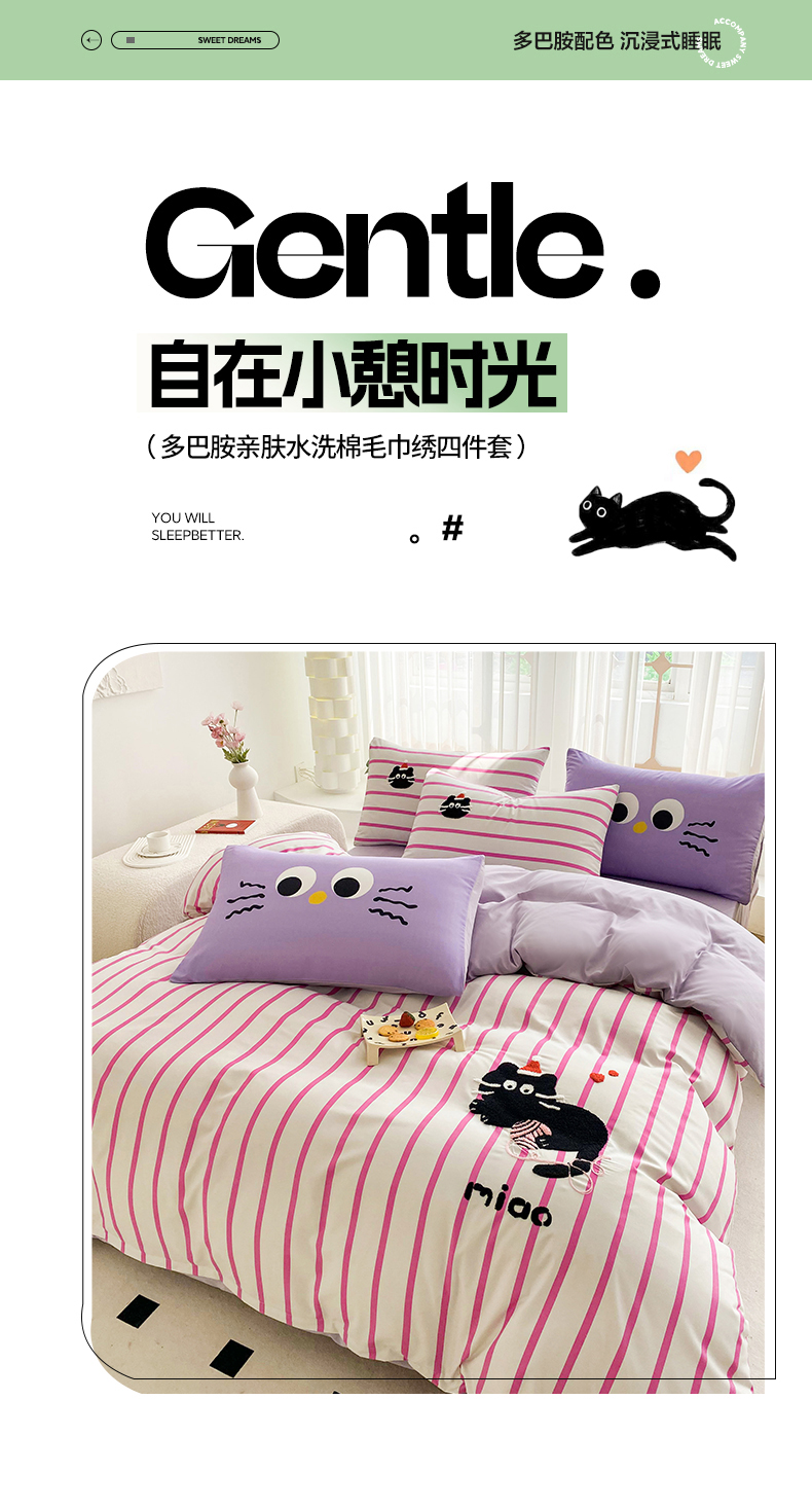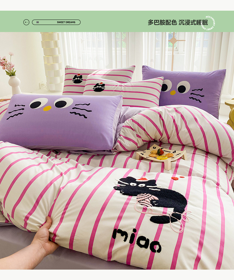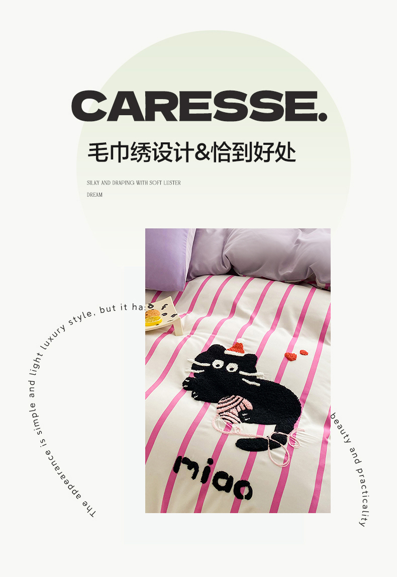 当前位置: 91家纺网 > 商品网购 > 床品套件 > 四件套 > 水洗棉四件套 > 眷恋家纺 2024新款多巴胺水洗棉毛巾绣四件套 猫咪-树莓粉
