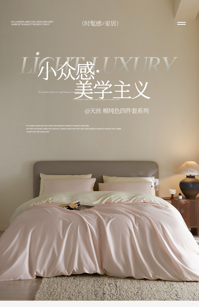 当前位置: 91家纺网 > 商品网购 > 床品套件 > 四件套 > 莱赛尔四件套 > 初拾 2024新款天丝棉纯色四件套-莫兰迪 莫兰迪-白恋粉