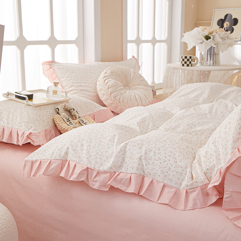 当前位置: 91家纺网 > 商品网购 > 床品套件 > 四件套 > 全棉普通四件套 > 一米阳光 2024新款2月全棉花边款四件套 云溪-粉