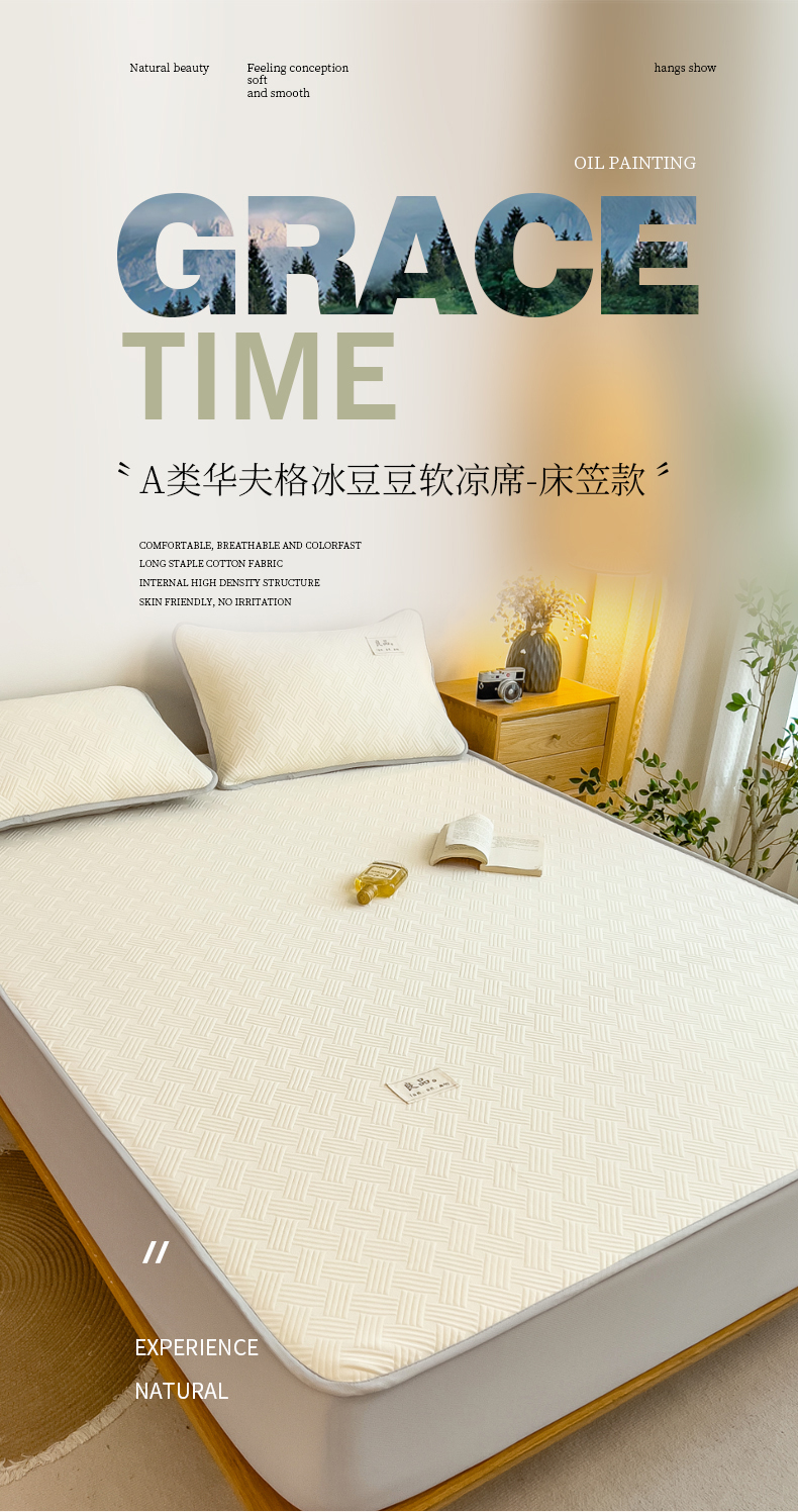 丝羽坊 2025新款PE凉感450克A类华夫格冰豆豆软凉席-床笠款 饼干花-奶白
