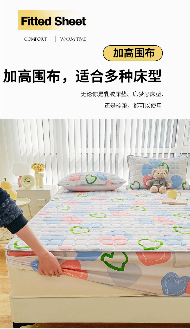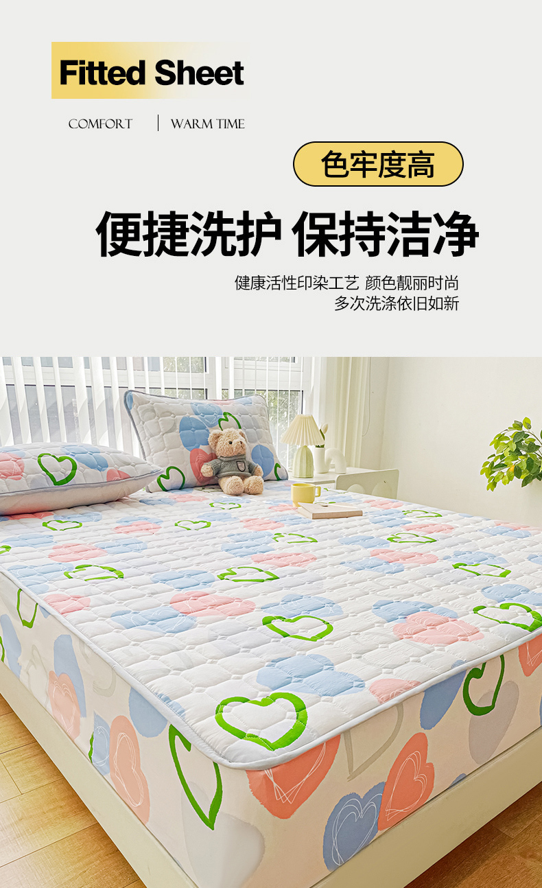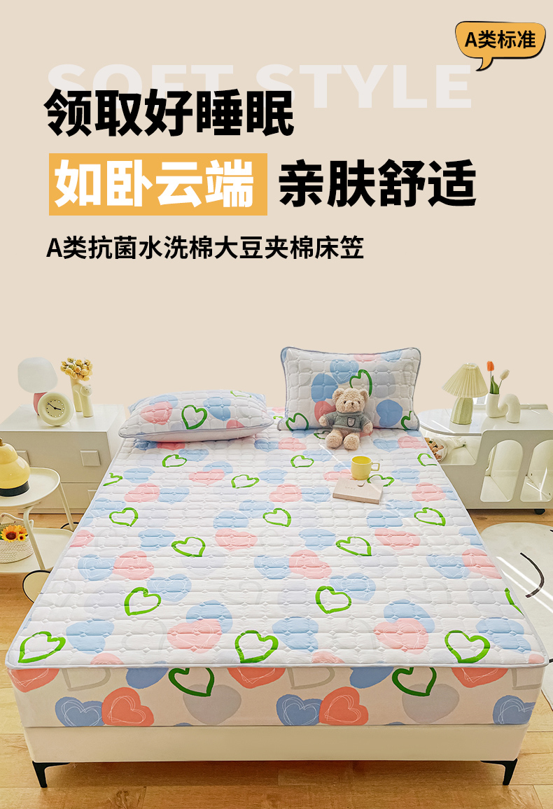 • 91家纺网 家纺一手货源 找家纺 恒尚居 2024新款小清新印花水洗棉大豆夹棉床笠 心心相印