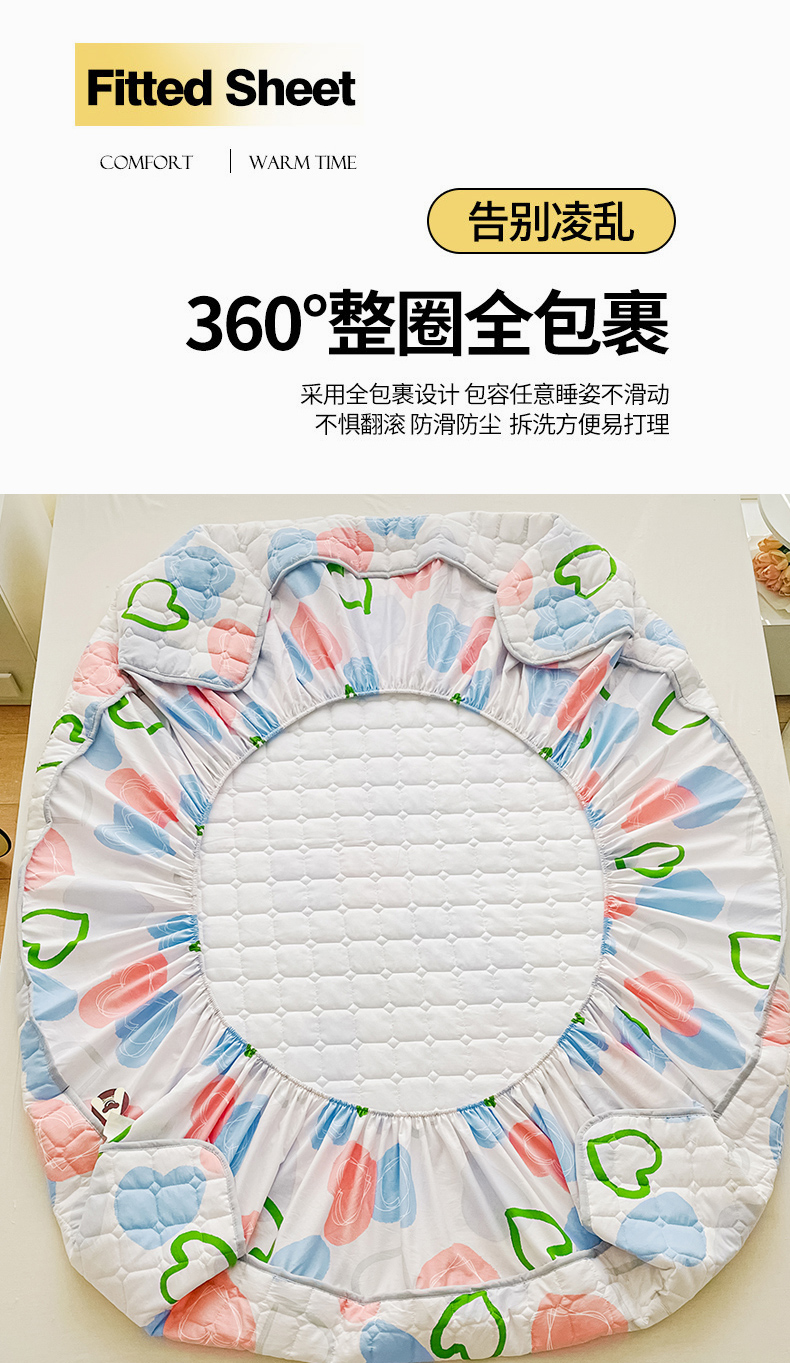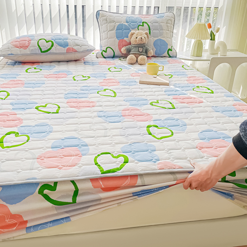 恒尚居 2024新款小清新印花水洗棉大豆夹棉床笠 心心相印