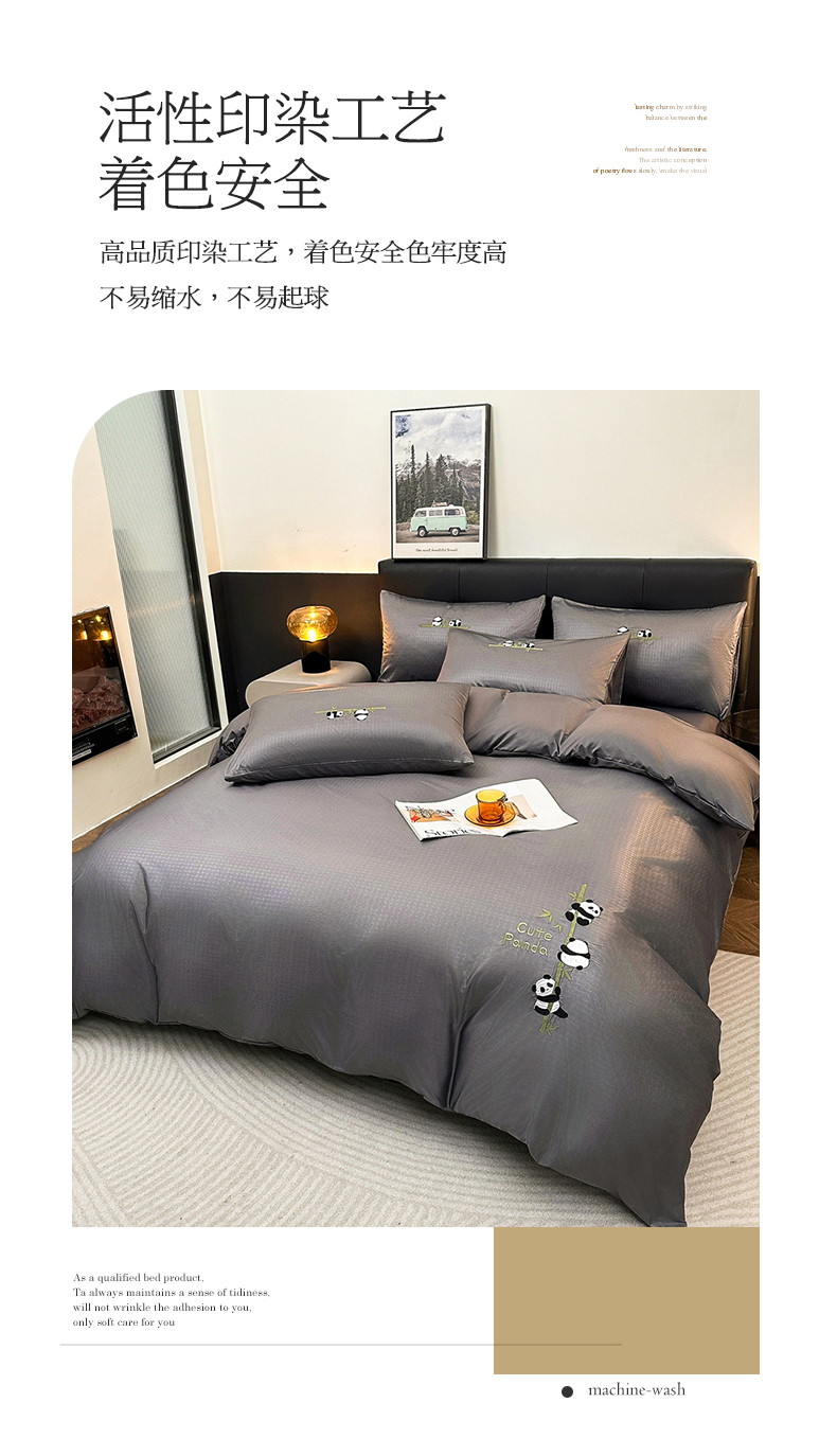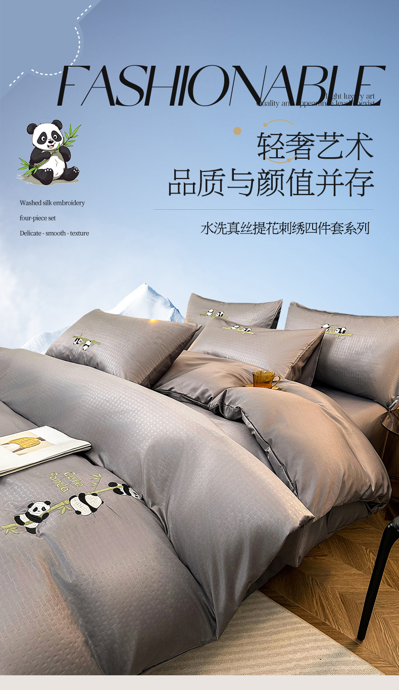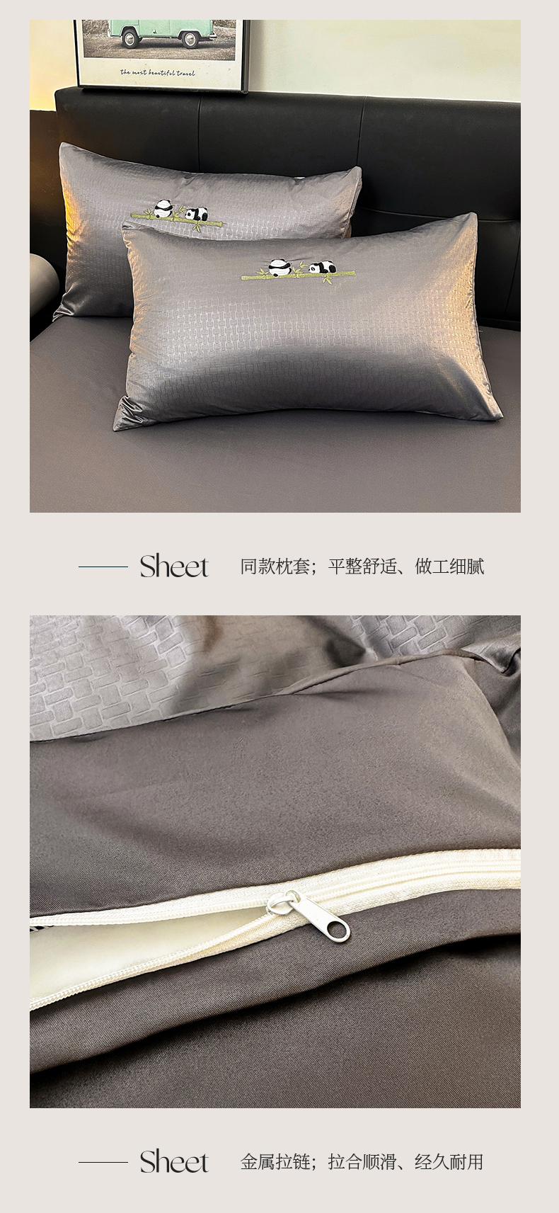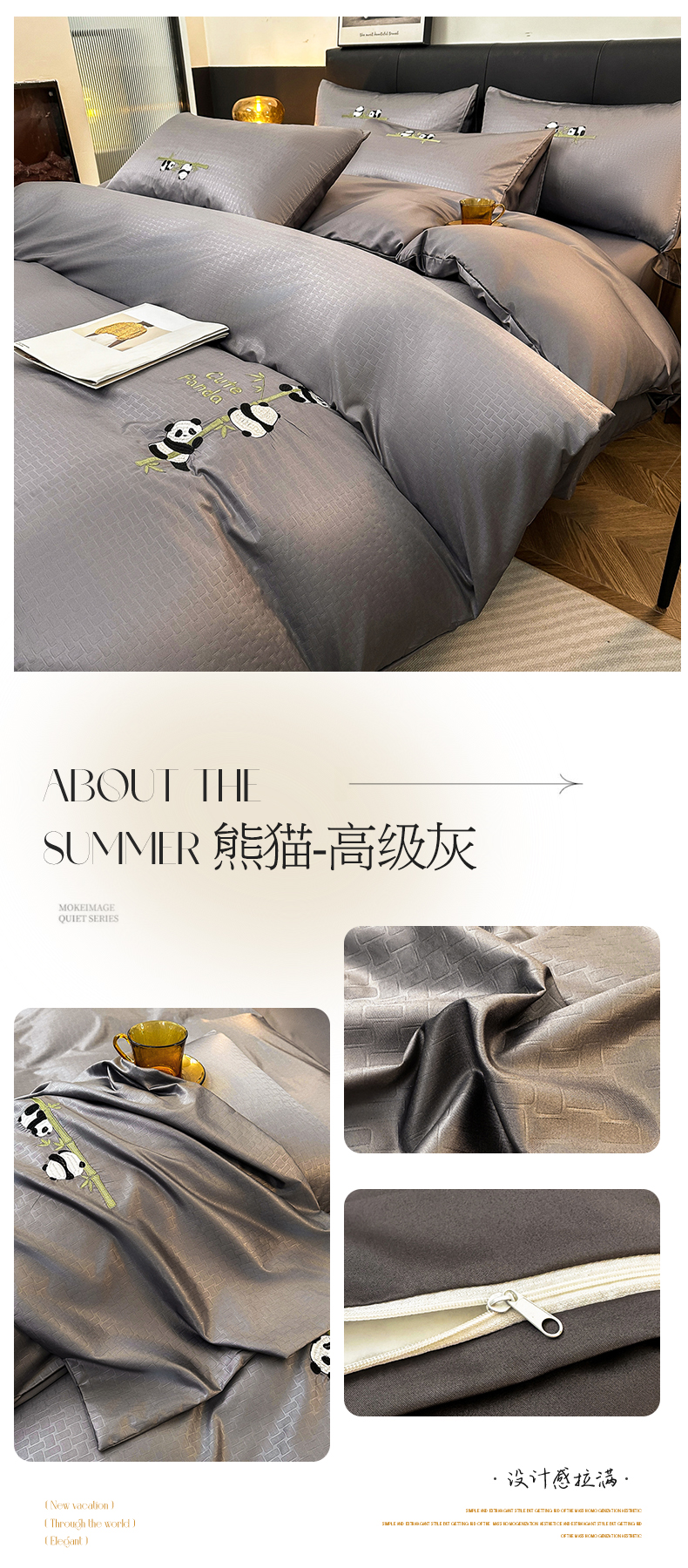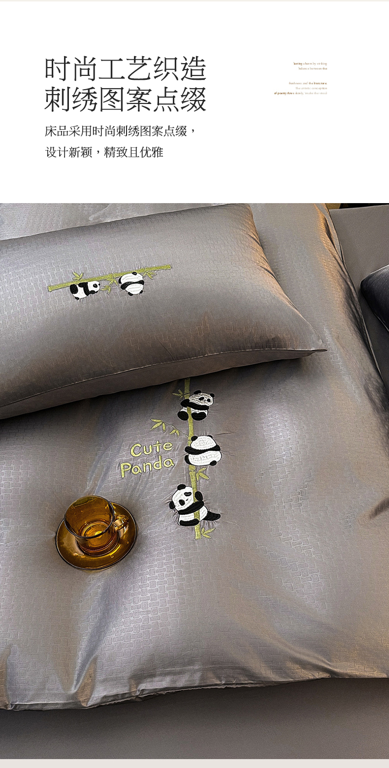 商品名称:古吉梦 2024新款水洗真丝提花四件套--熊猫 高级灰