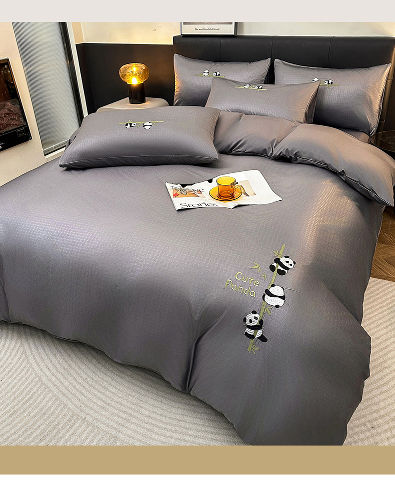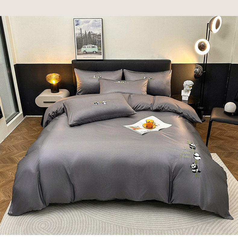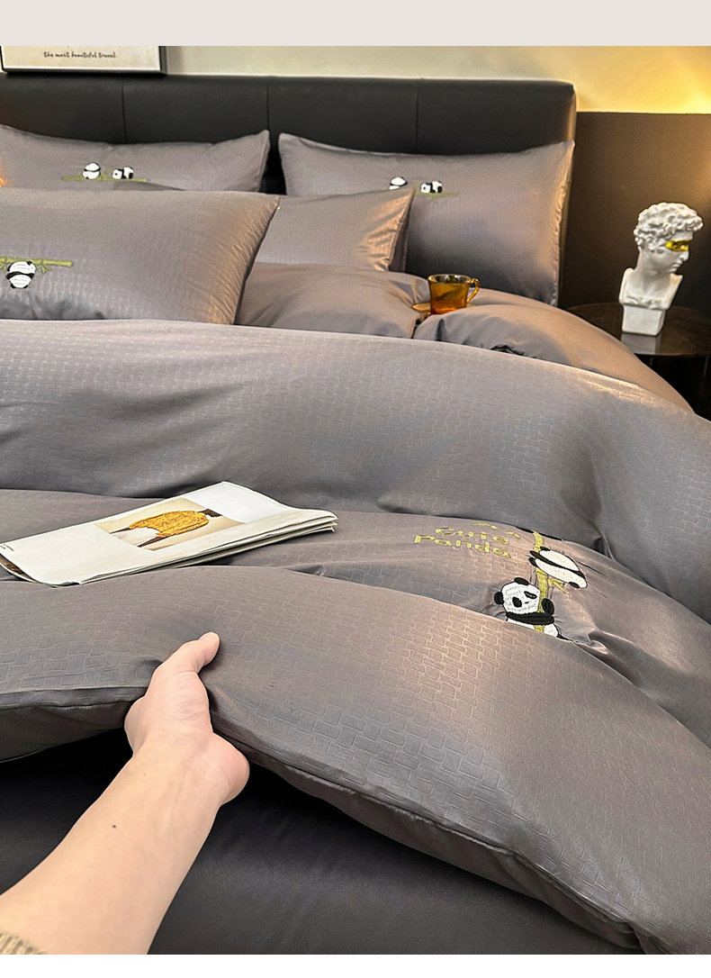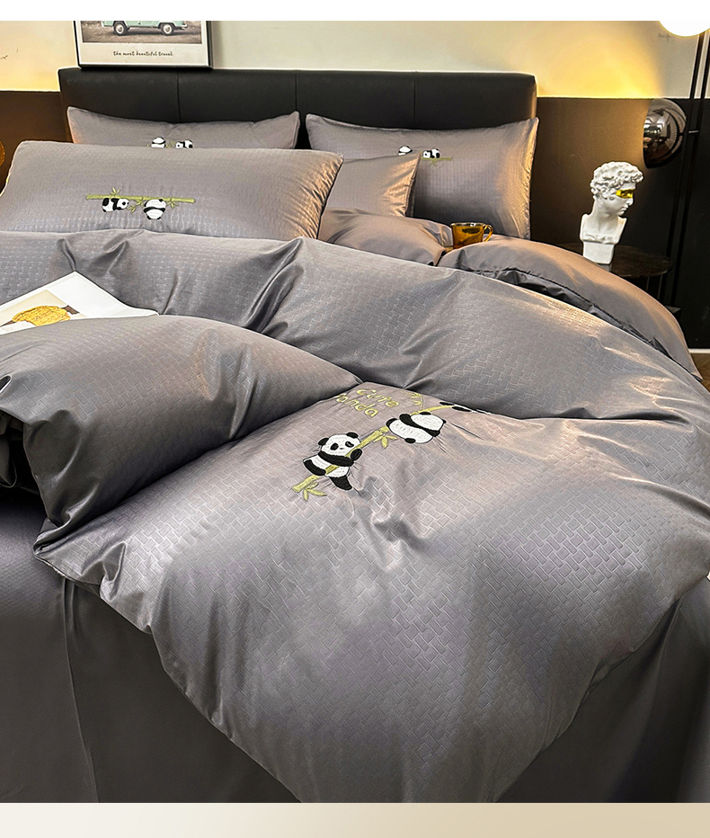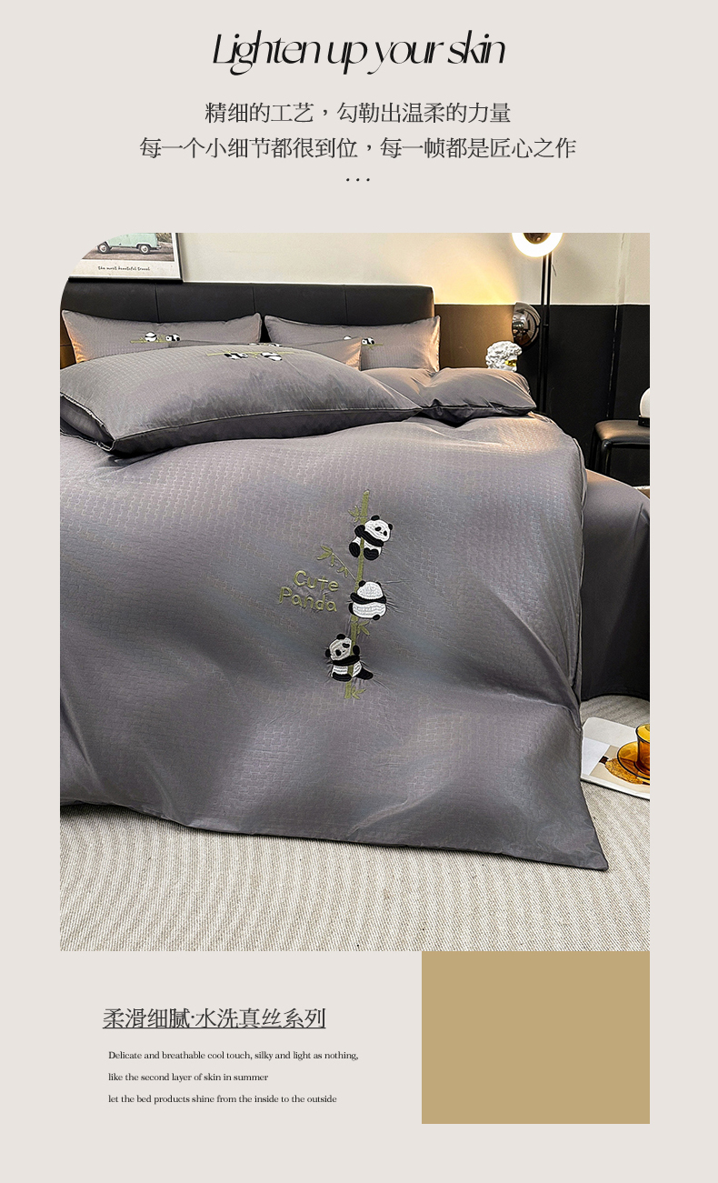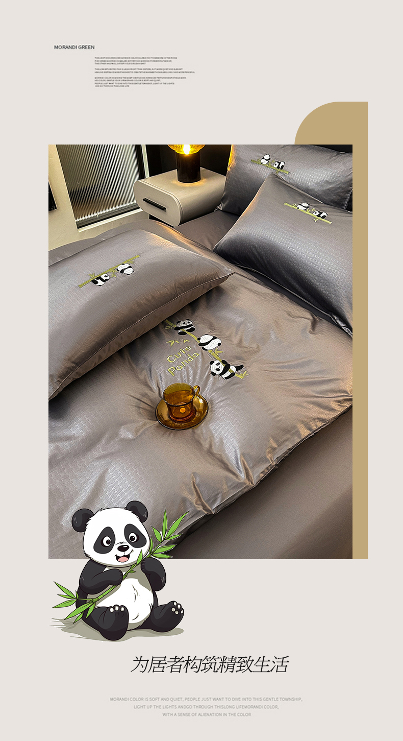 古吉梦 2024新款水洗真丝提花四件套--熊猫 高级灰