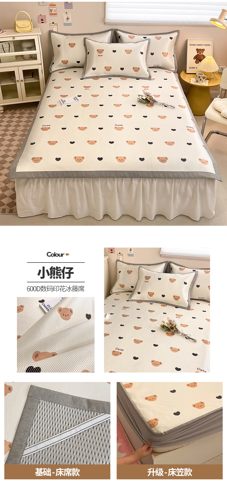 商品名称:懒猫家纺 2024新款600D数码印花冰藤凉席-床单款 小熊仔