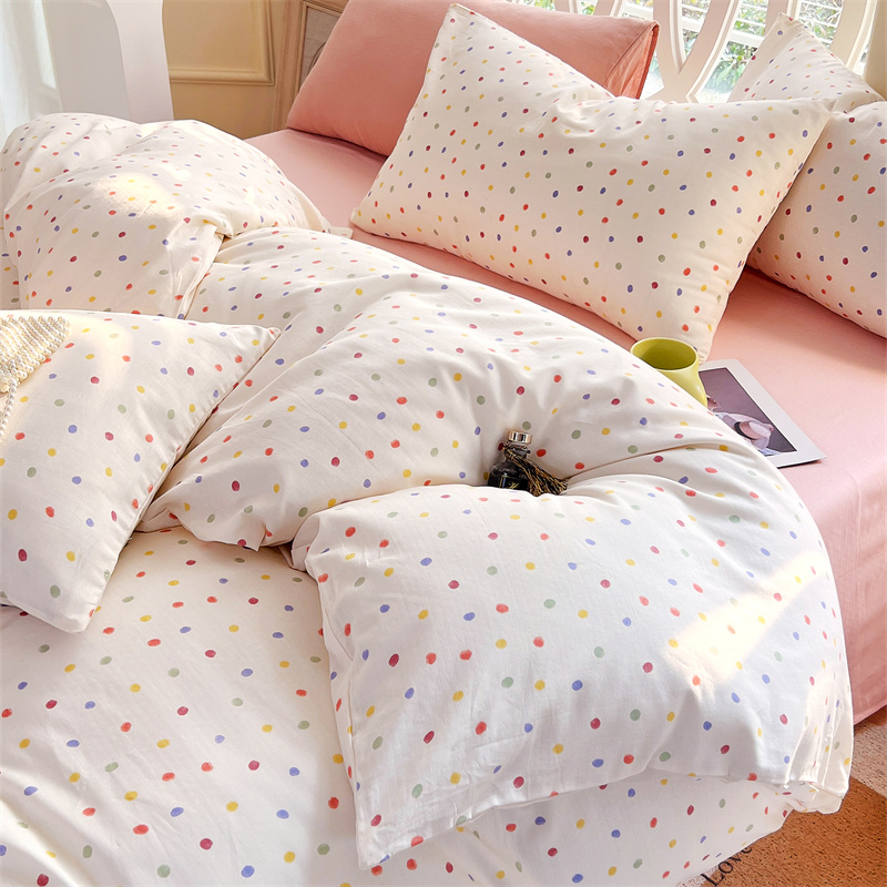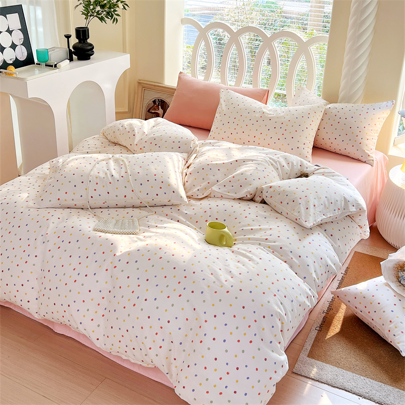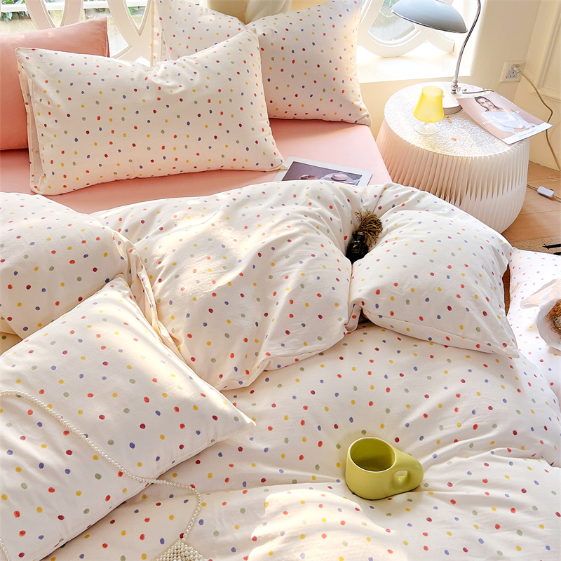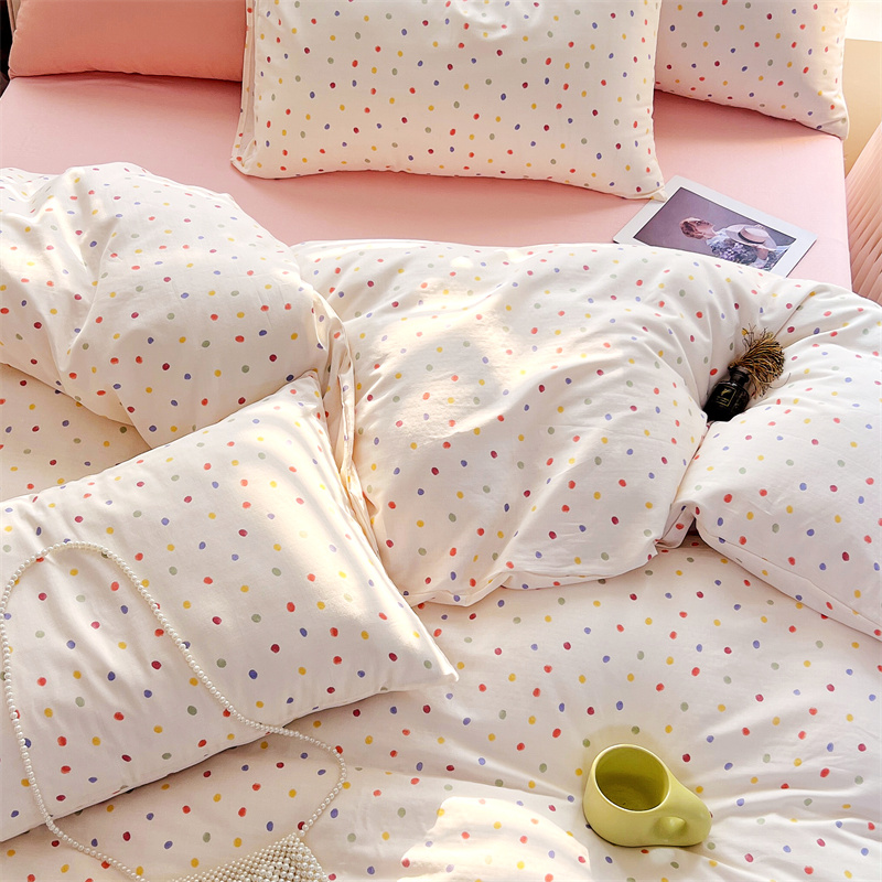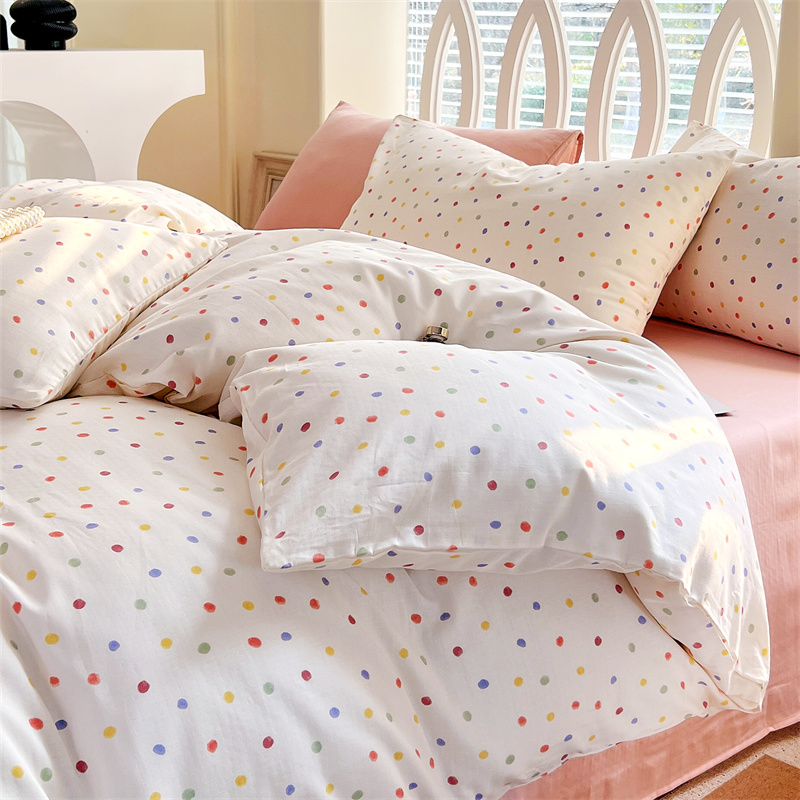 商品名称:于果 2024新款全棉双层纱四件套-奶油波点