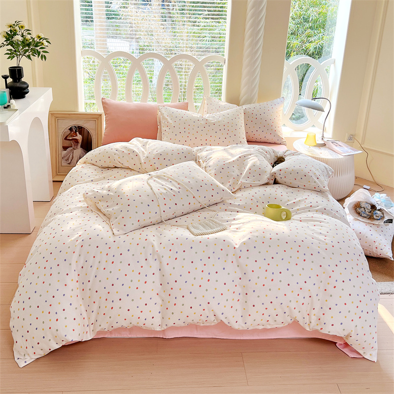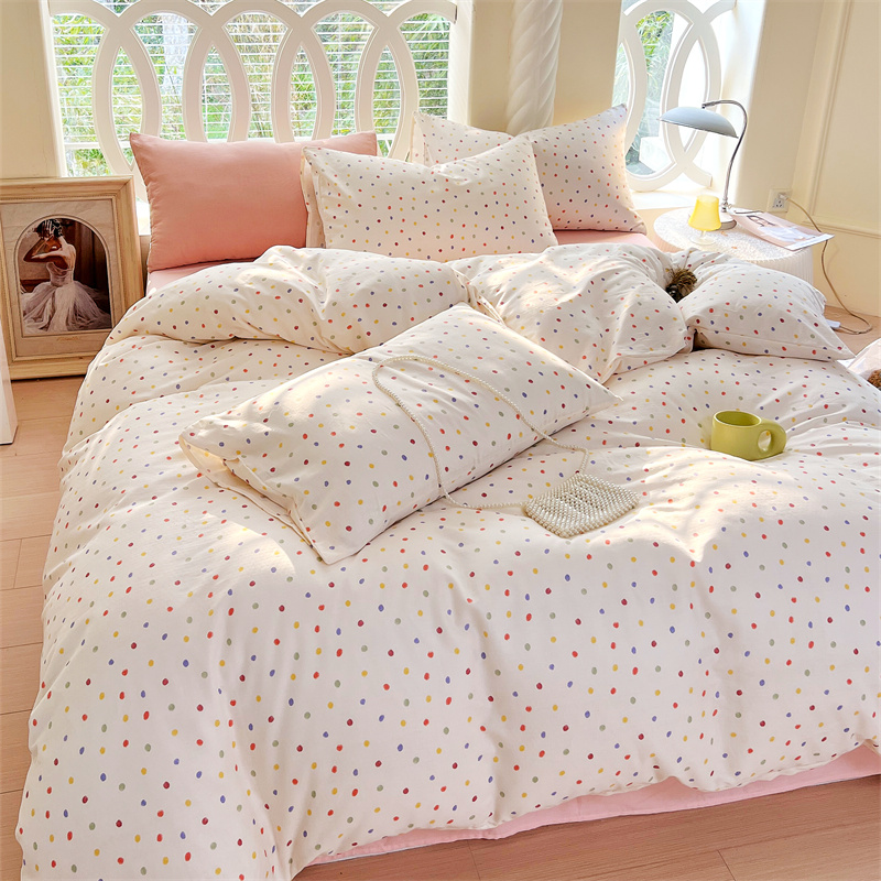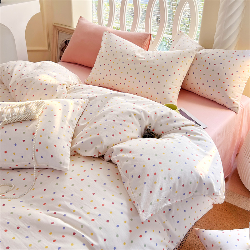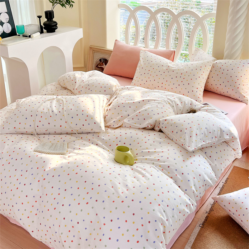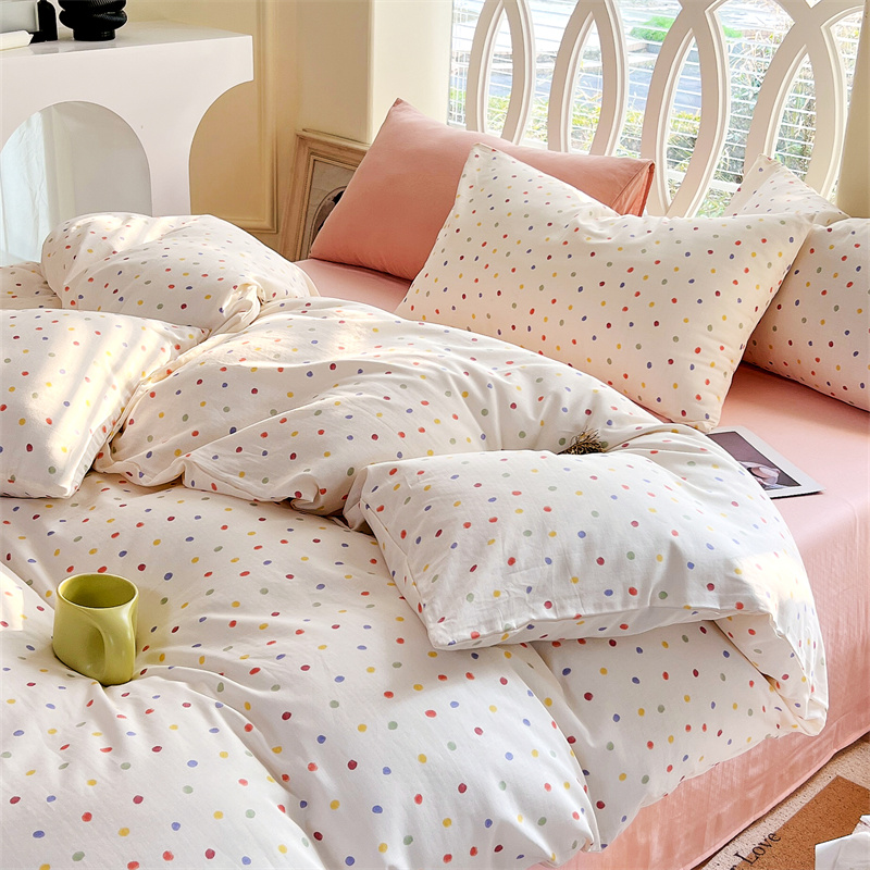 商品名称:于果 2024新款全棉双层纱四件套-奶油波点