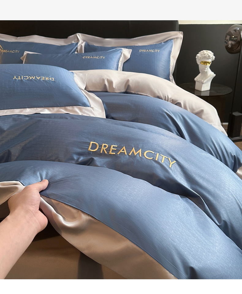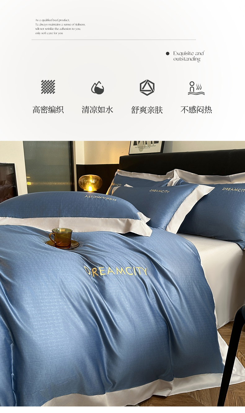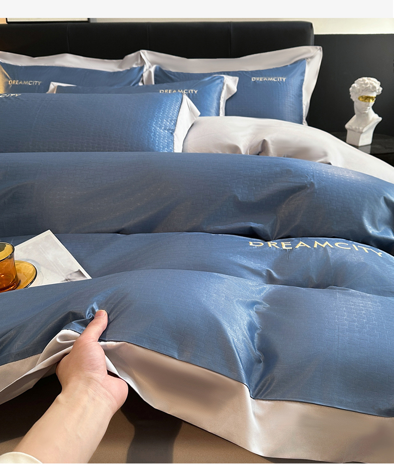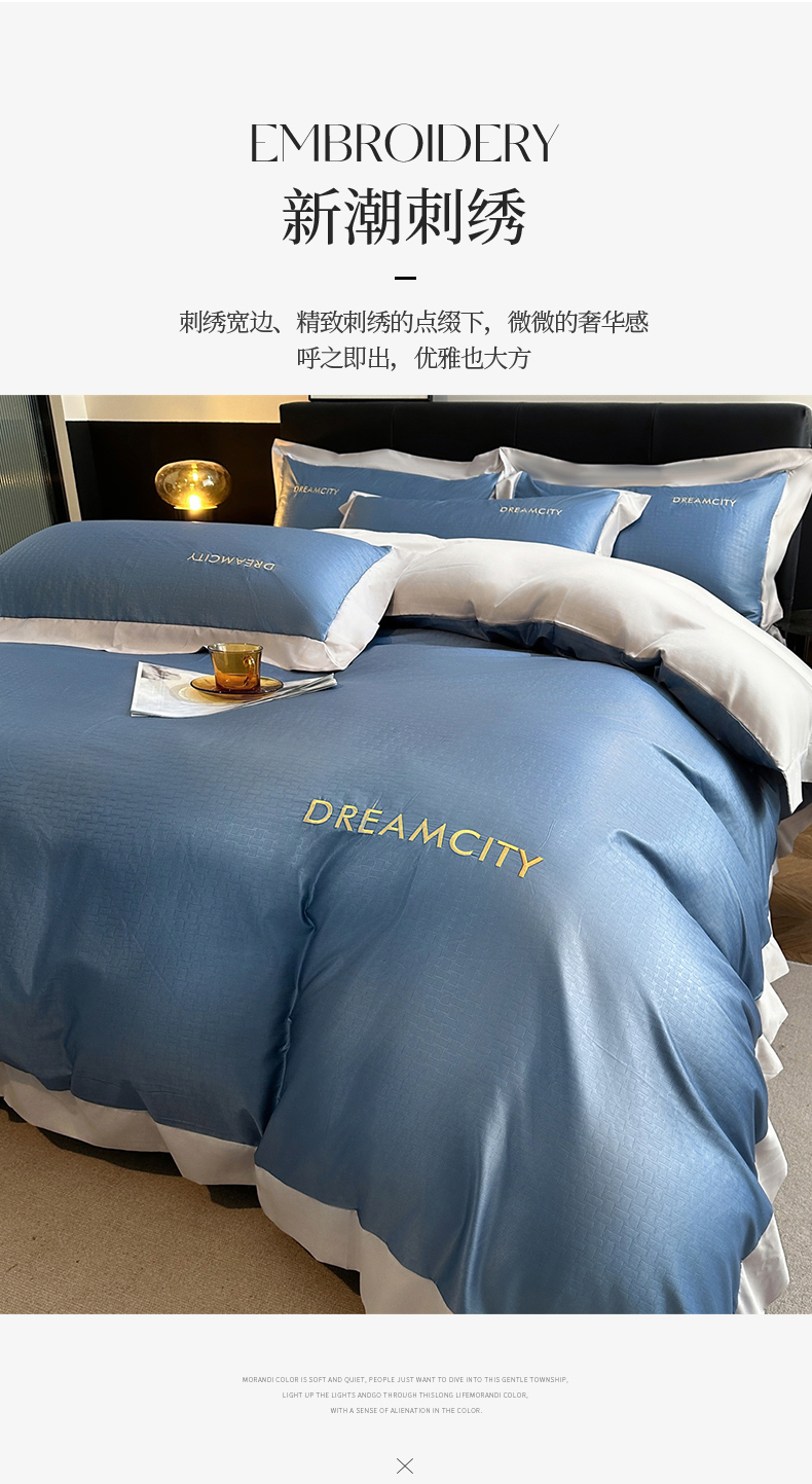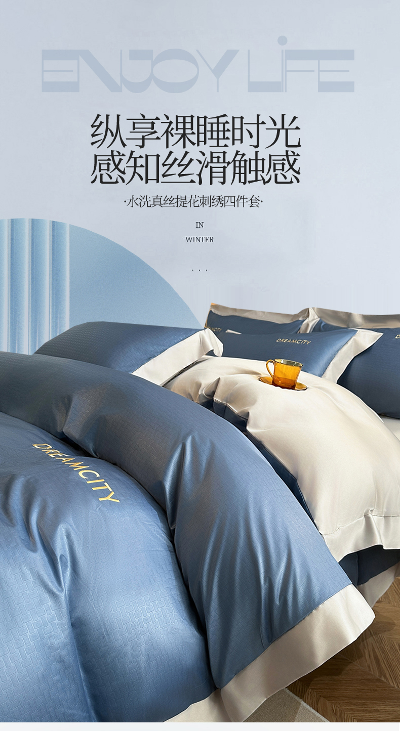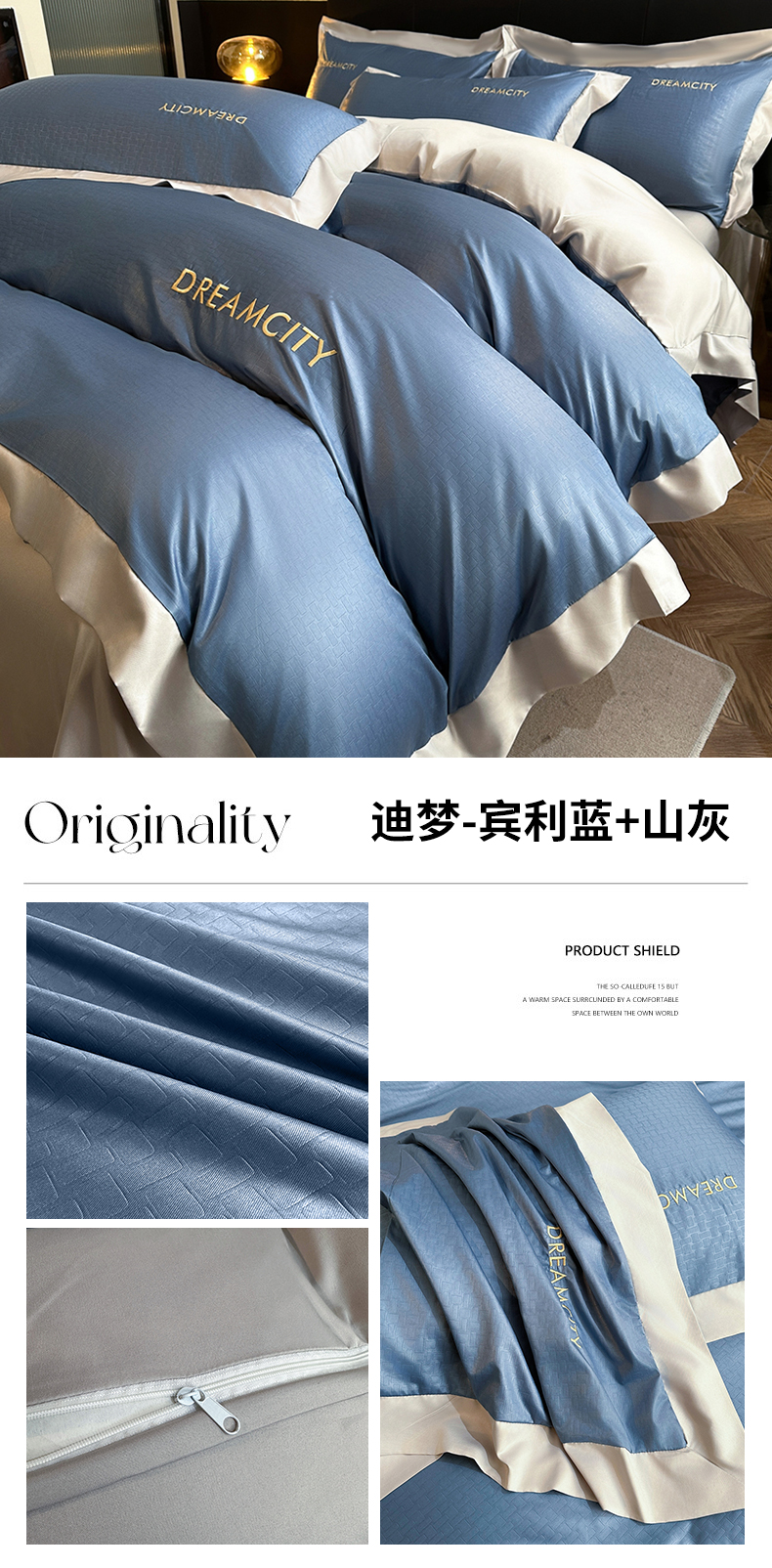 (总)古吉梦 2024新款水洗真丝提花四件套--迪梦 ,宾利蓝+山灰,豆沙+山灰,高级灰+奶茶,海青+山灰,奶昔白+奶茶,山灰+中灰,天空蓝+海青,星空蓝+山灰,中灰+山灰