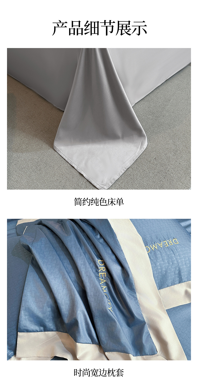 商品名称:古吉梦 2024新款水洗真丝提花四件套--迪梦 宾利蓝+山灰