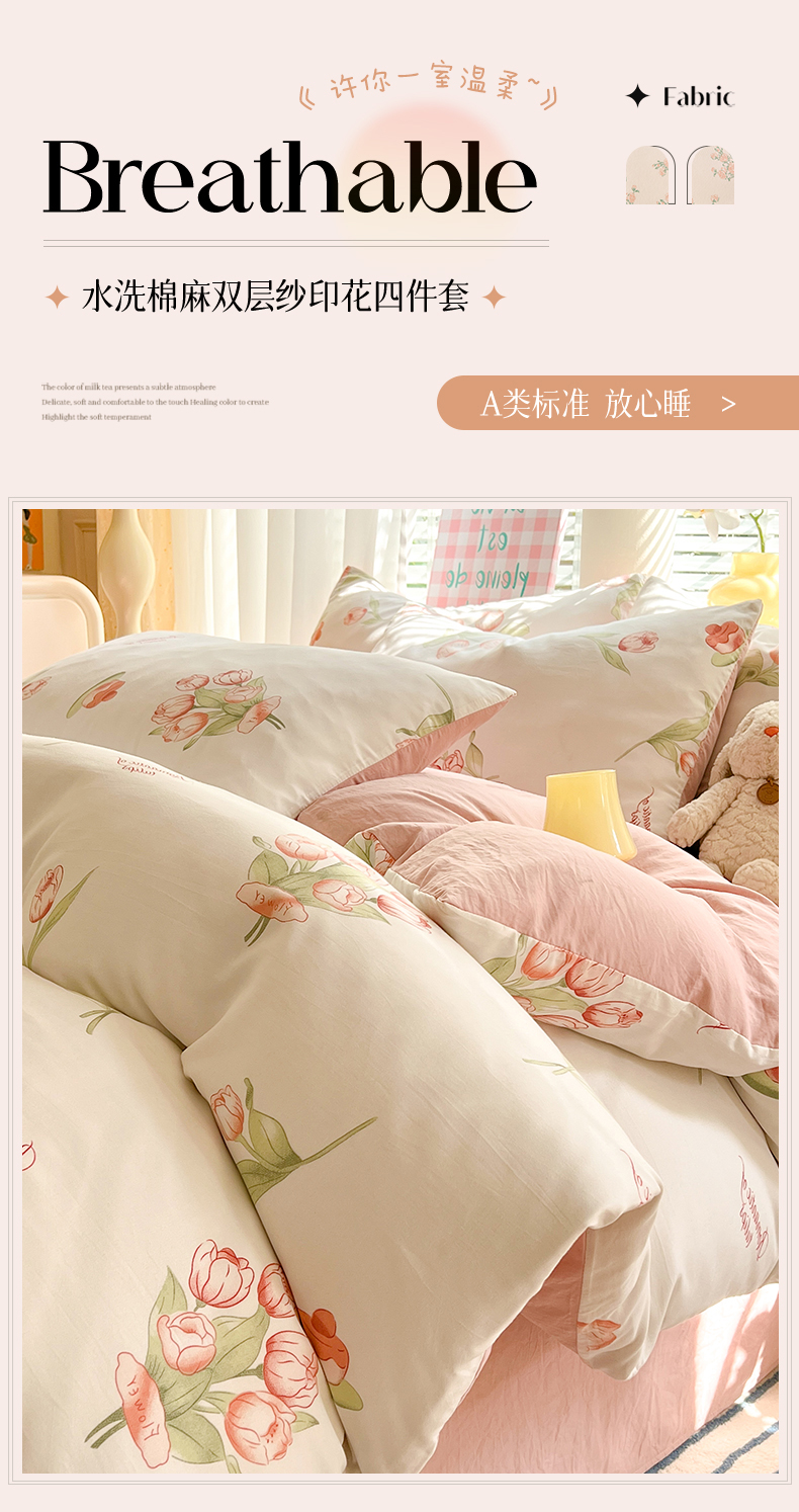当前位置: 91家纺网 > 商品网购 > 床品套件 > 四件套 > 双层纱四件套 > 多品 2024新款水洗棉双层纱四件套 郁香园