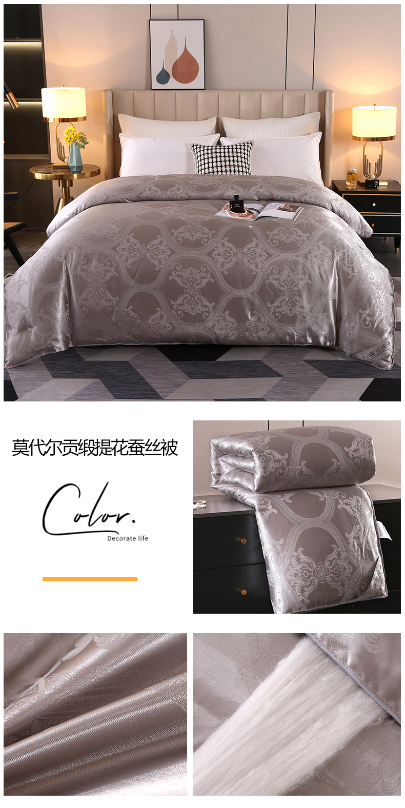 (总)尚品家纺 2025新款莫代尔手工订花蚕丝被,灰色,玉色,白色,粉色
