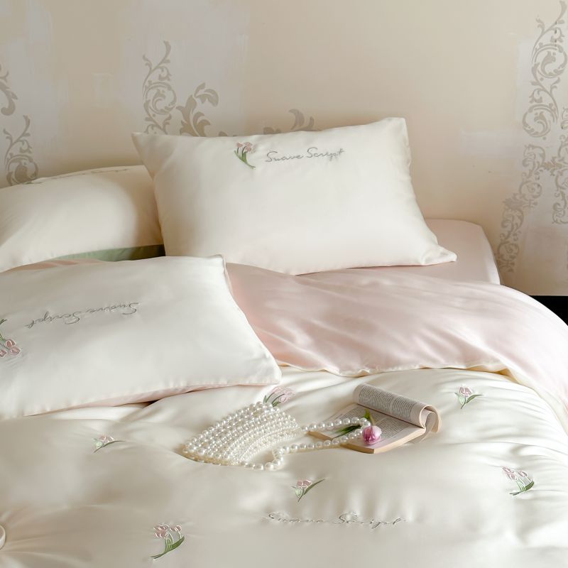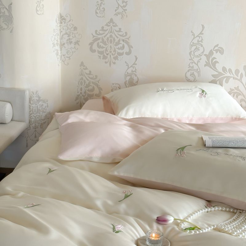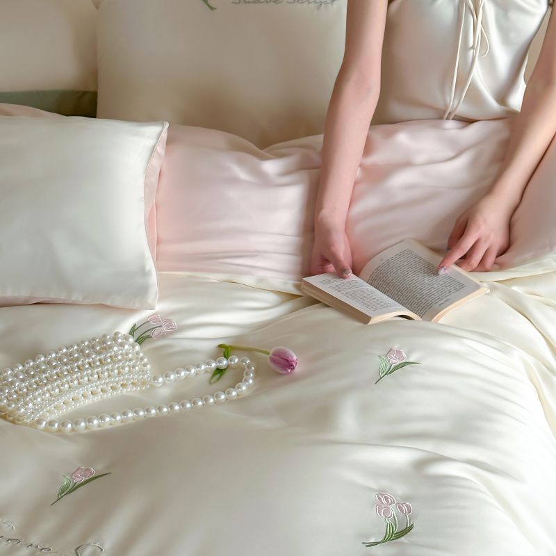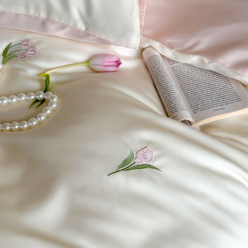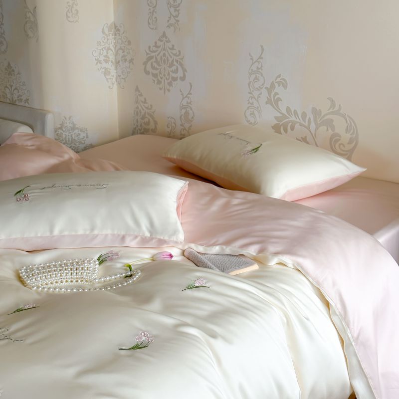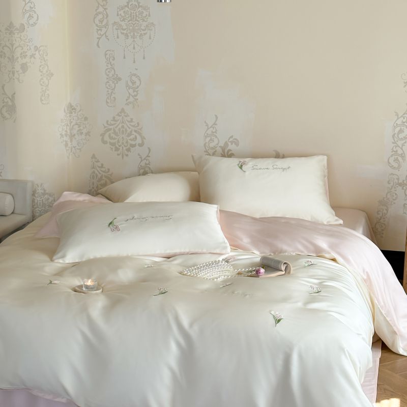 当前位置: 91家纺网 > 商品网购 > 床品套件 > 四件套 > 莱赛尔四件套 > 初拾 2024新款A类天丝棉刺绣四件套-郁金香铃兰花 郁金香-桃夭