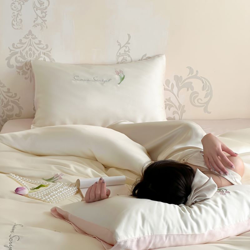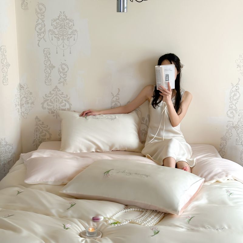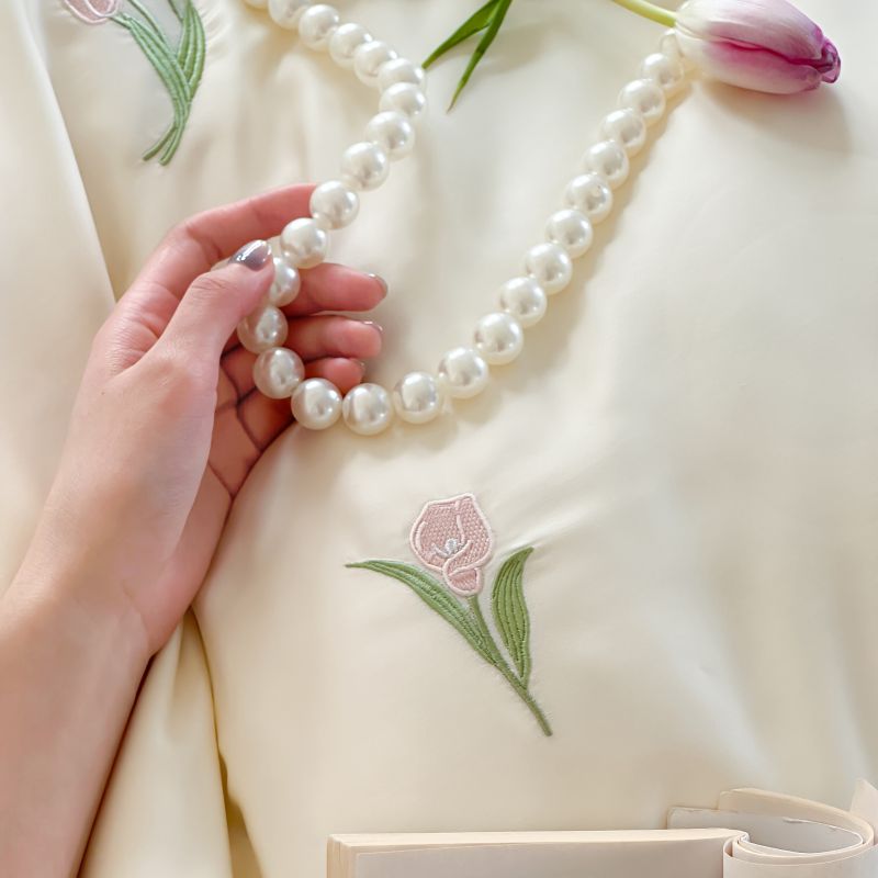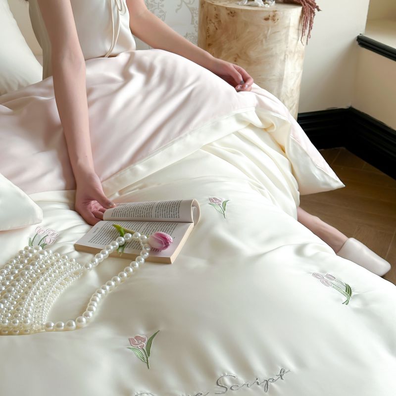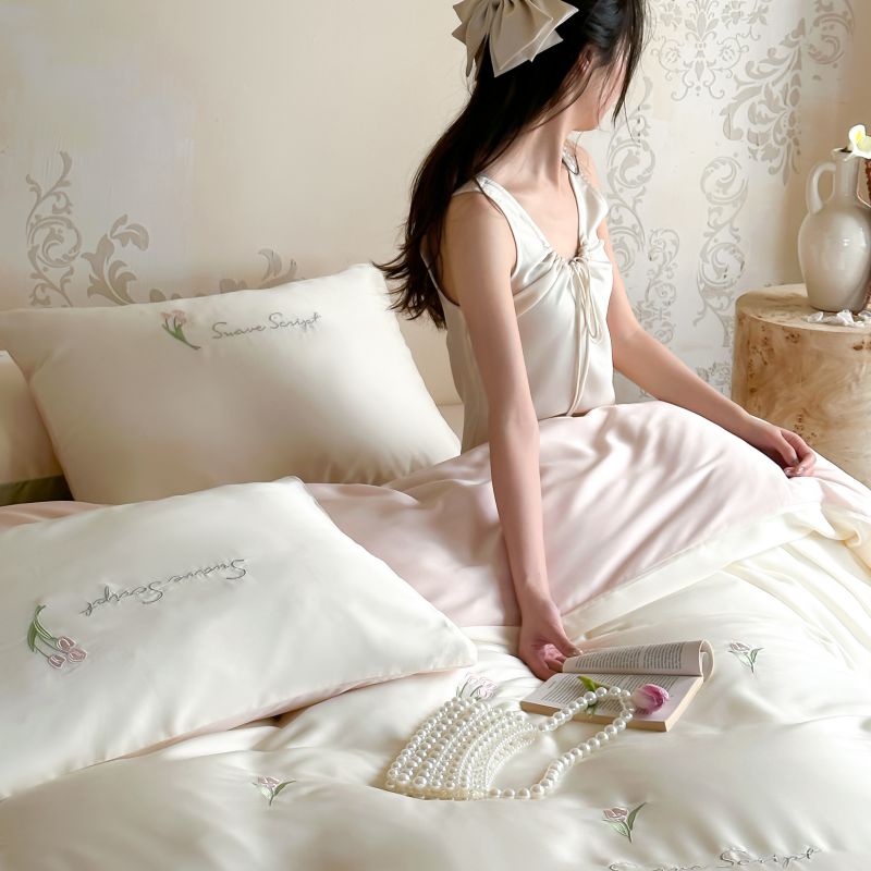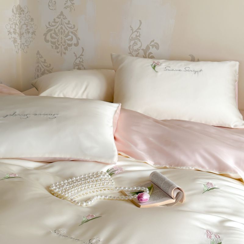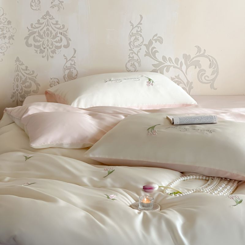 当前位置: 91家纺网 > 商品网购 > 床品套件 > 四件套 > 莱赛尔四件套 > 初拾 2024新款A类天丝棉刺绣四件套-郁金香铃兰花 郁金香-桃夭