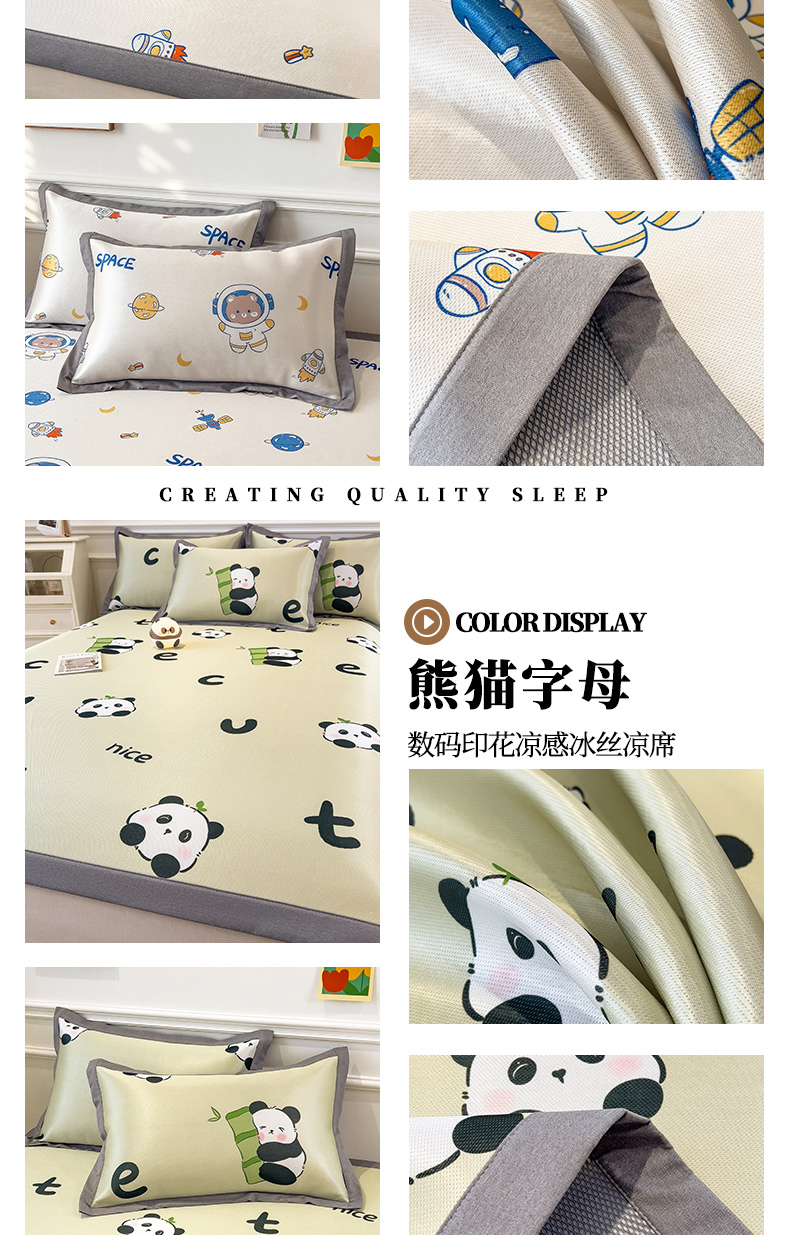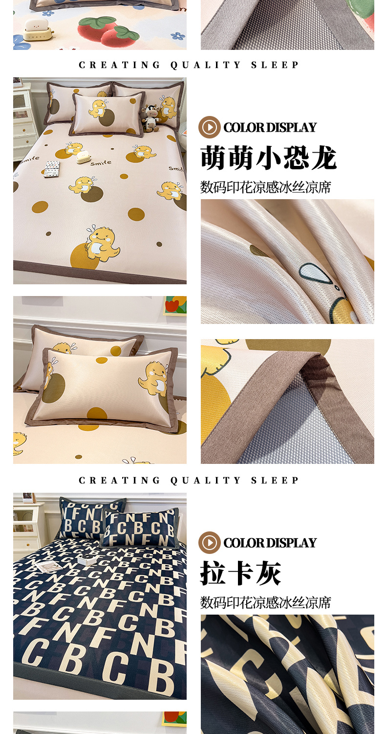 商品名称:2024新款60D数码印花卡通冰丝席-成人款 恐龙宝贝
