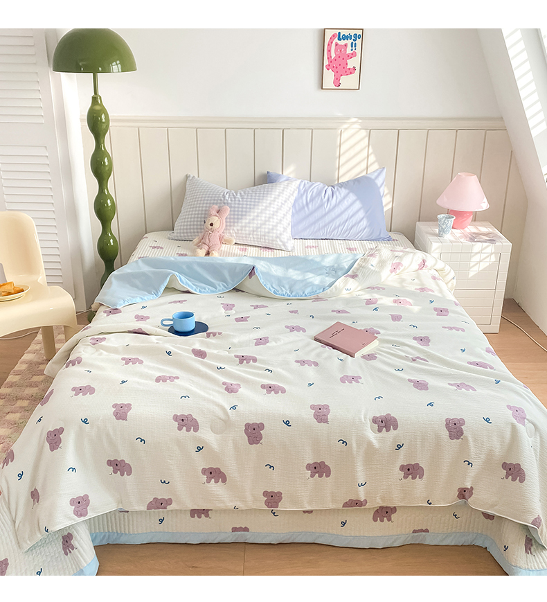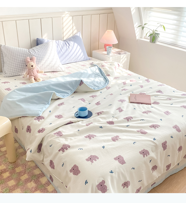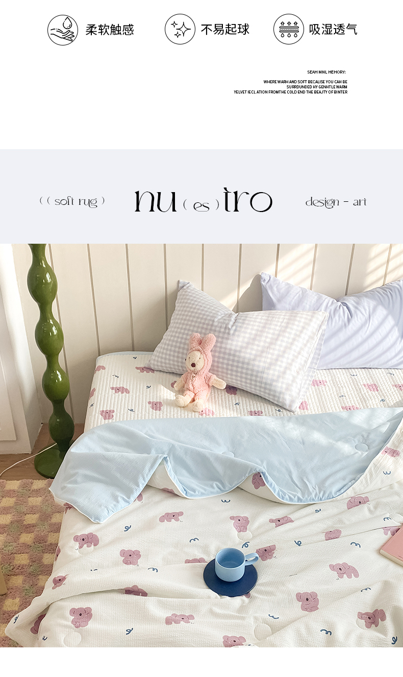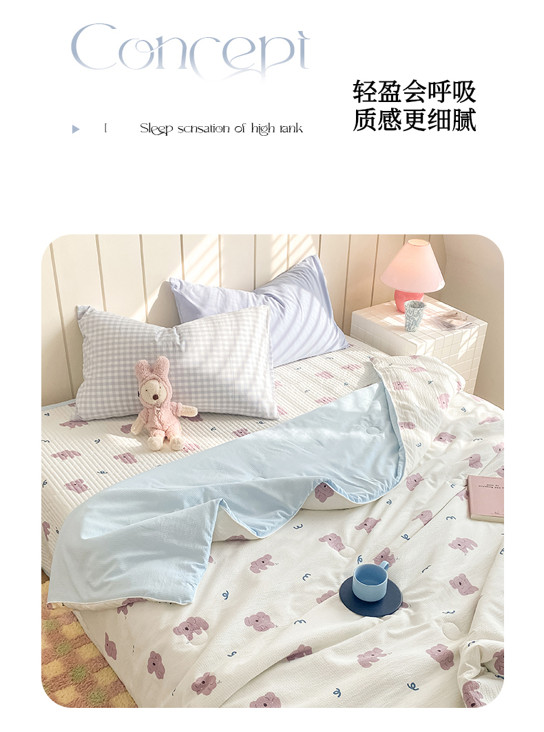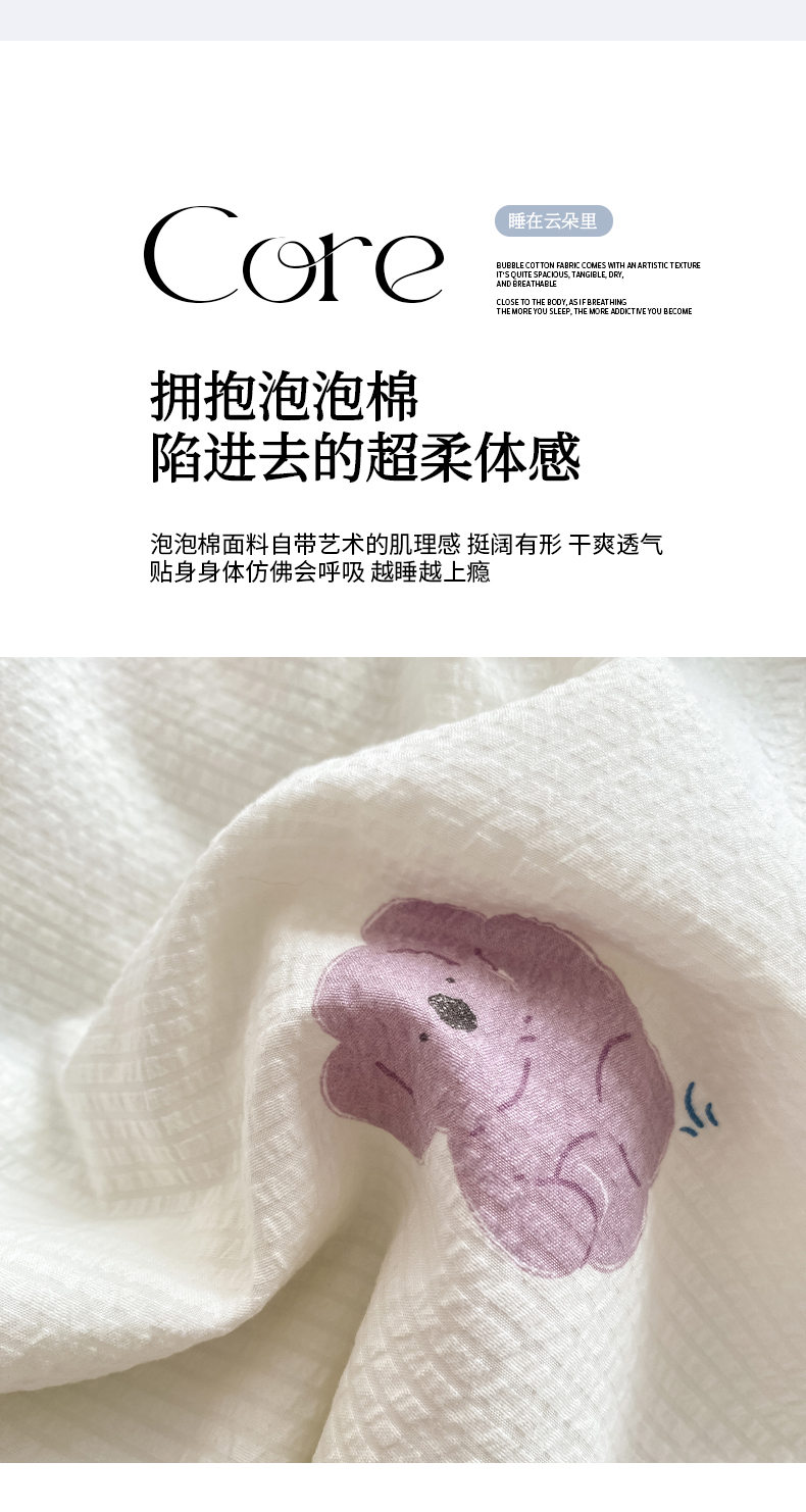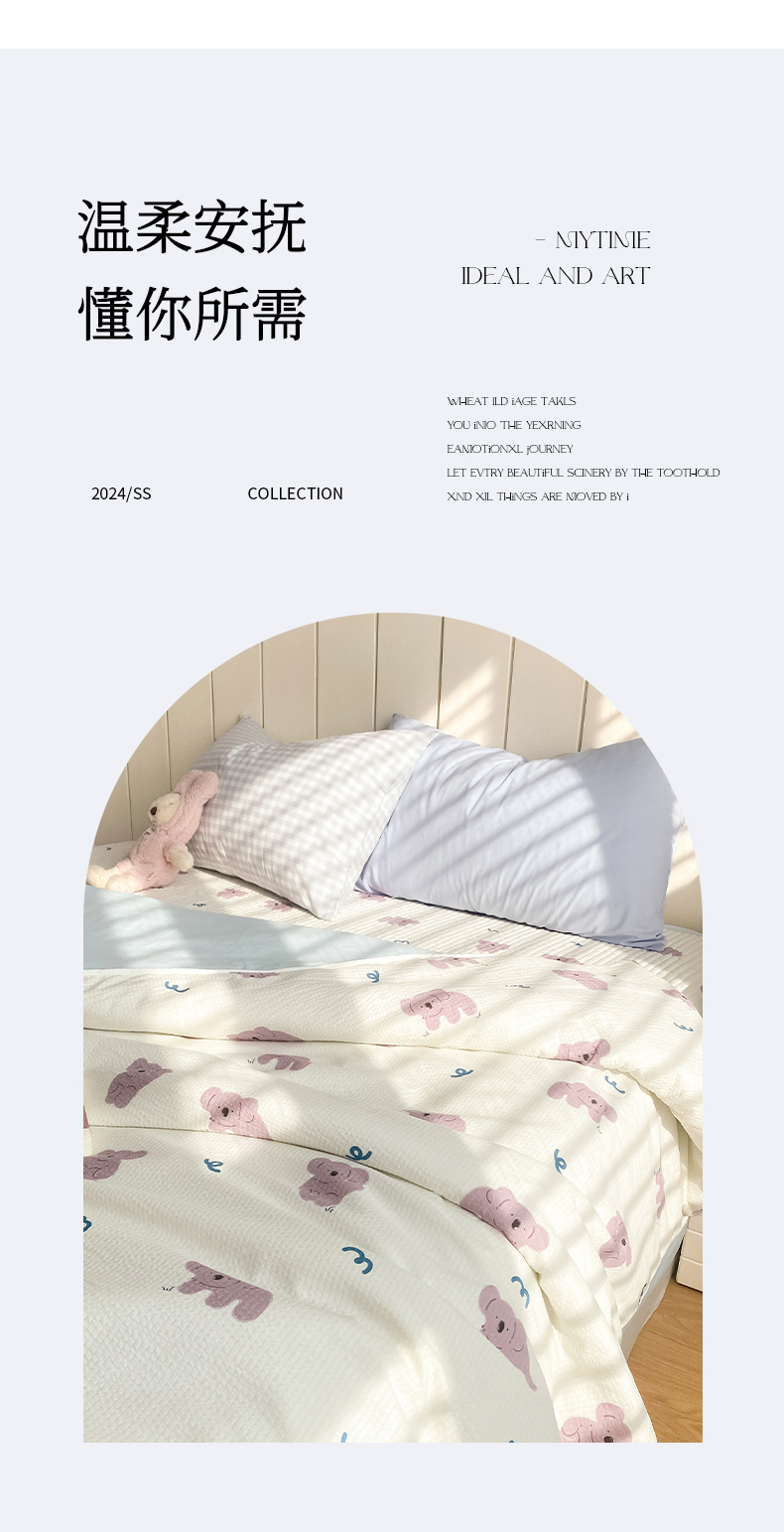 商品名称:羋多家纺 2024新款麻绳印花小米棉夏被云感泡芙棉被子泡泡纱单夏被(另有单独床盖)欢乐颂
